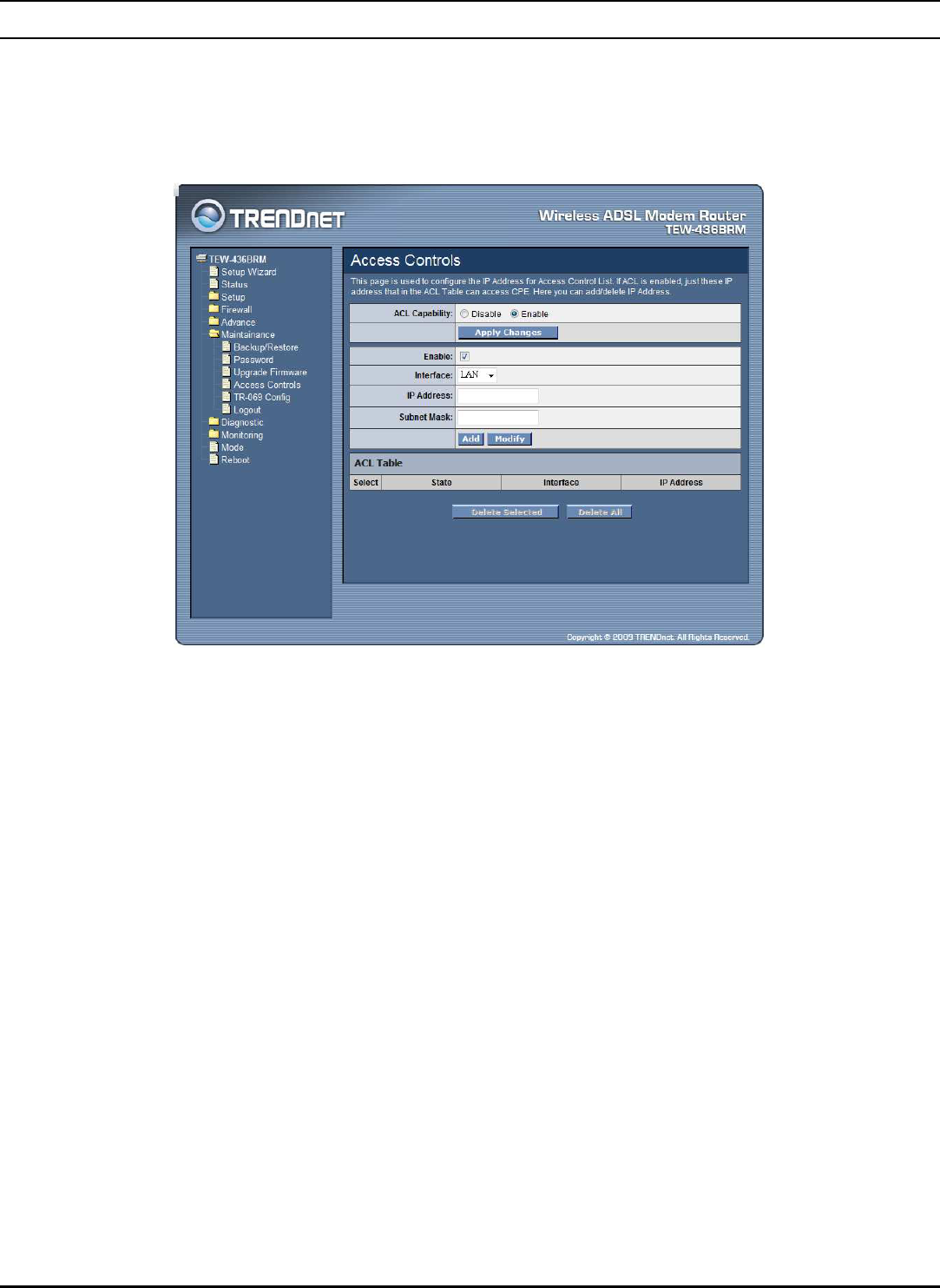 This page is used to configure the bridge parameters. Here you can change the