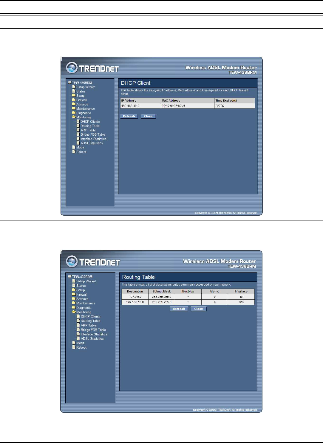 This table shows the assigned IP address, MAC address and time expired for each