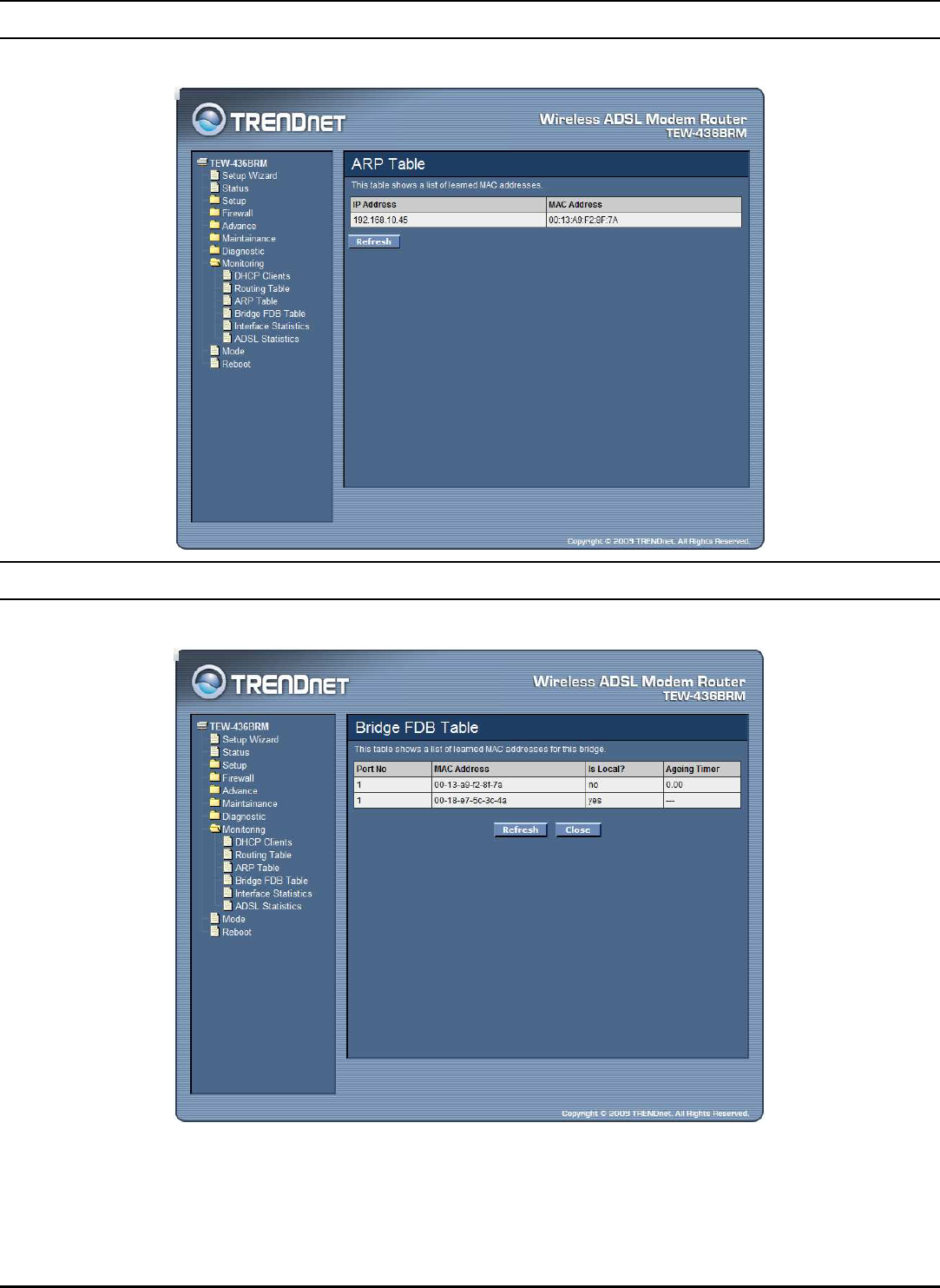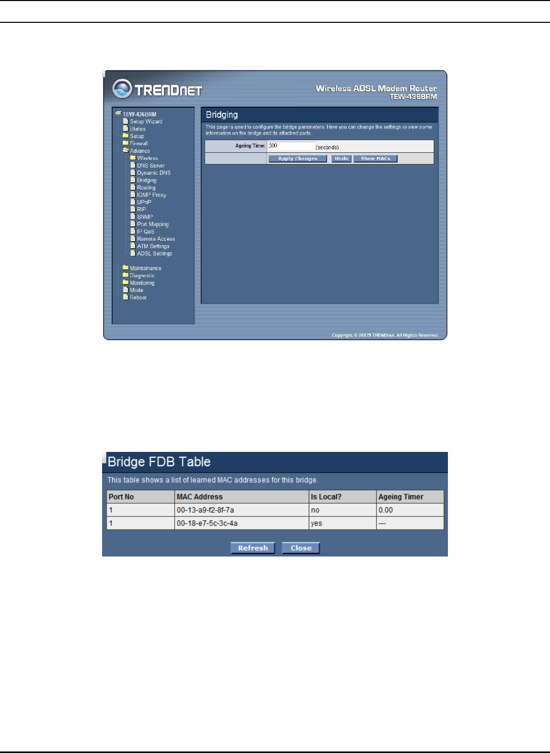 Show MACs: Click the Show MACs” button to list MAC address in forwarding