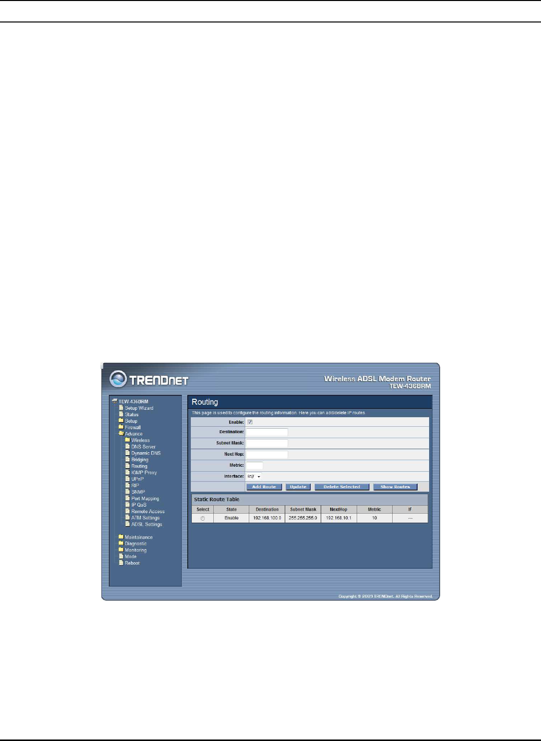 The Routing page enables you to define specific route for your Internet and