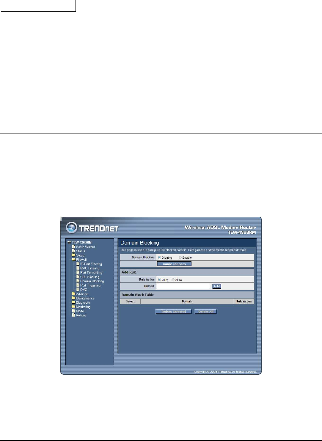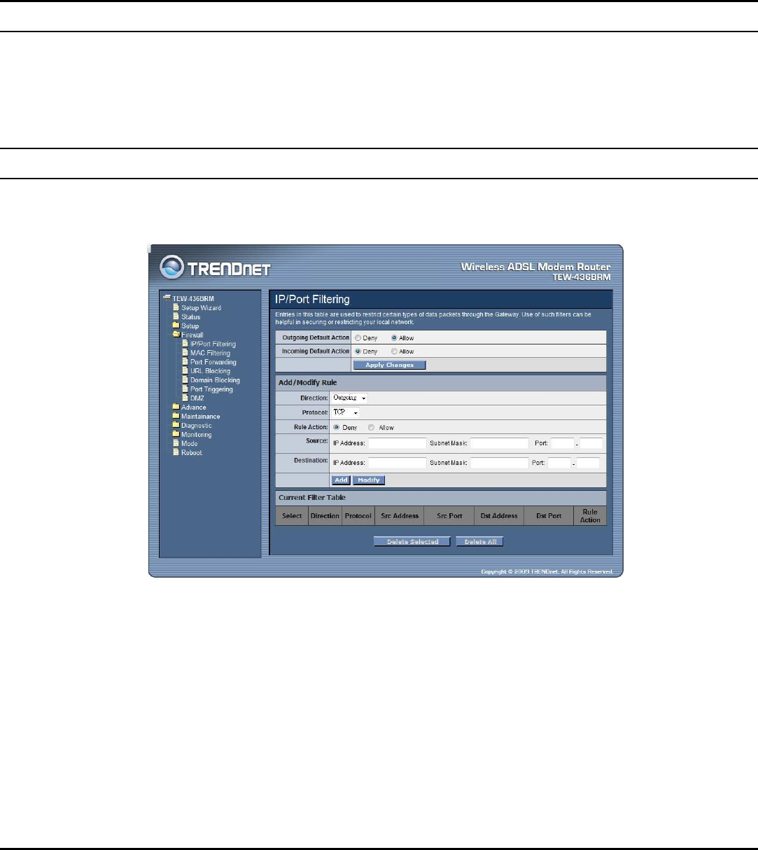 Delete All: Click the “Delete All” button to delete the all of rule in the Current