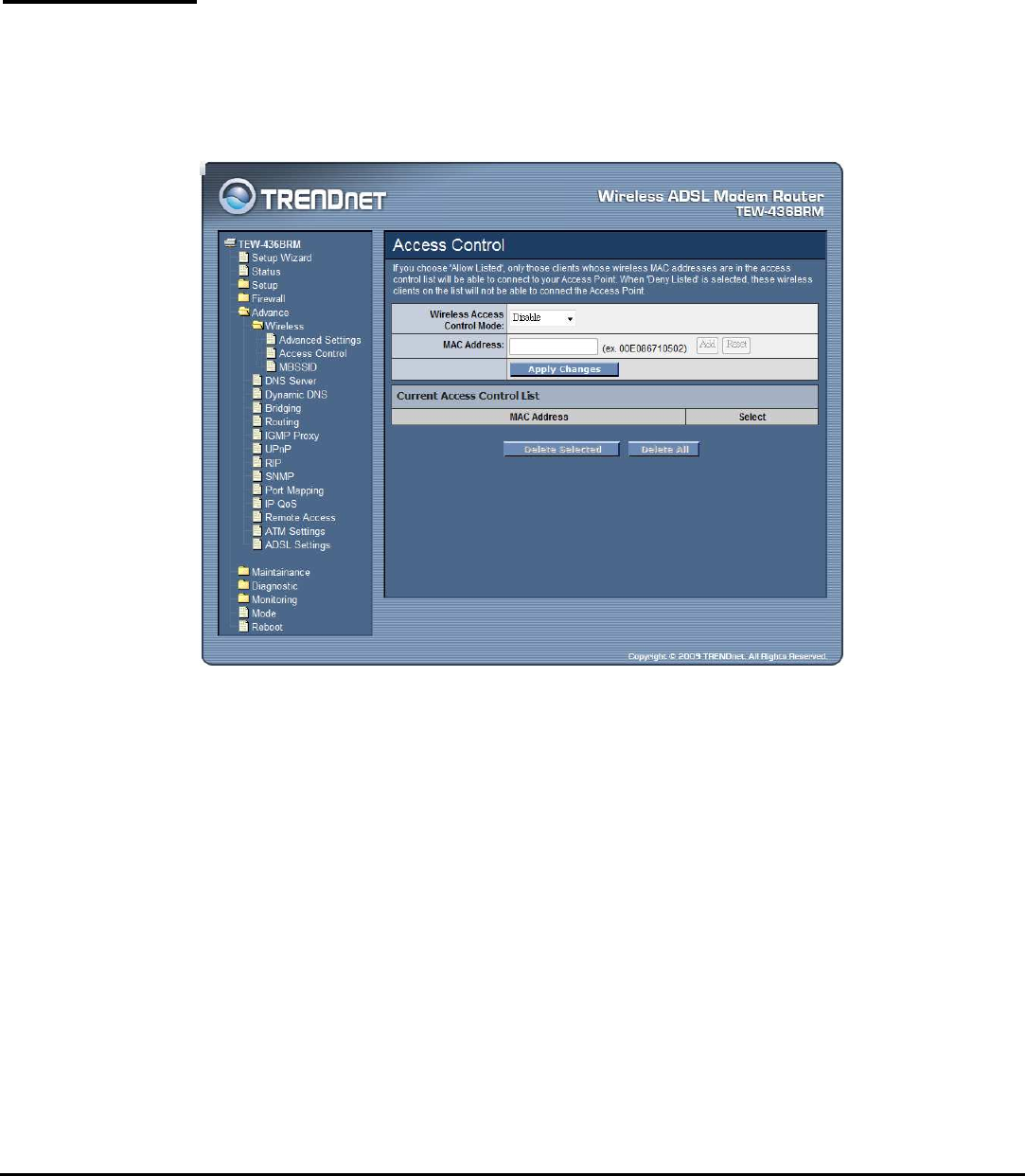 control list will be able to connect to your WLAN ADSL Router.