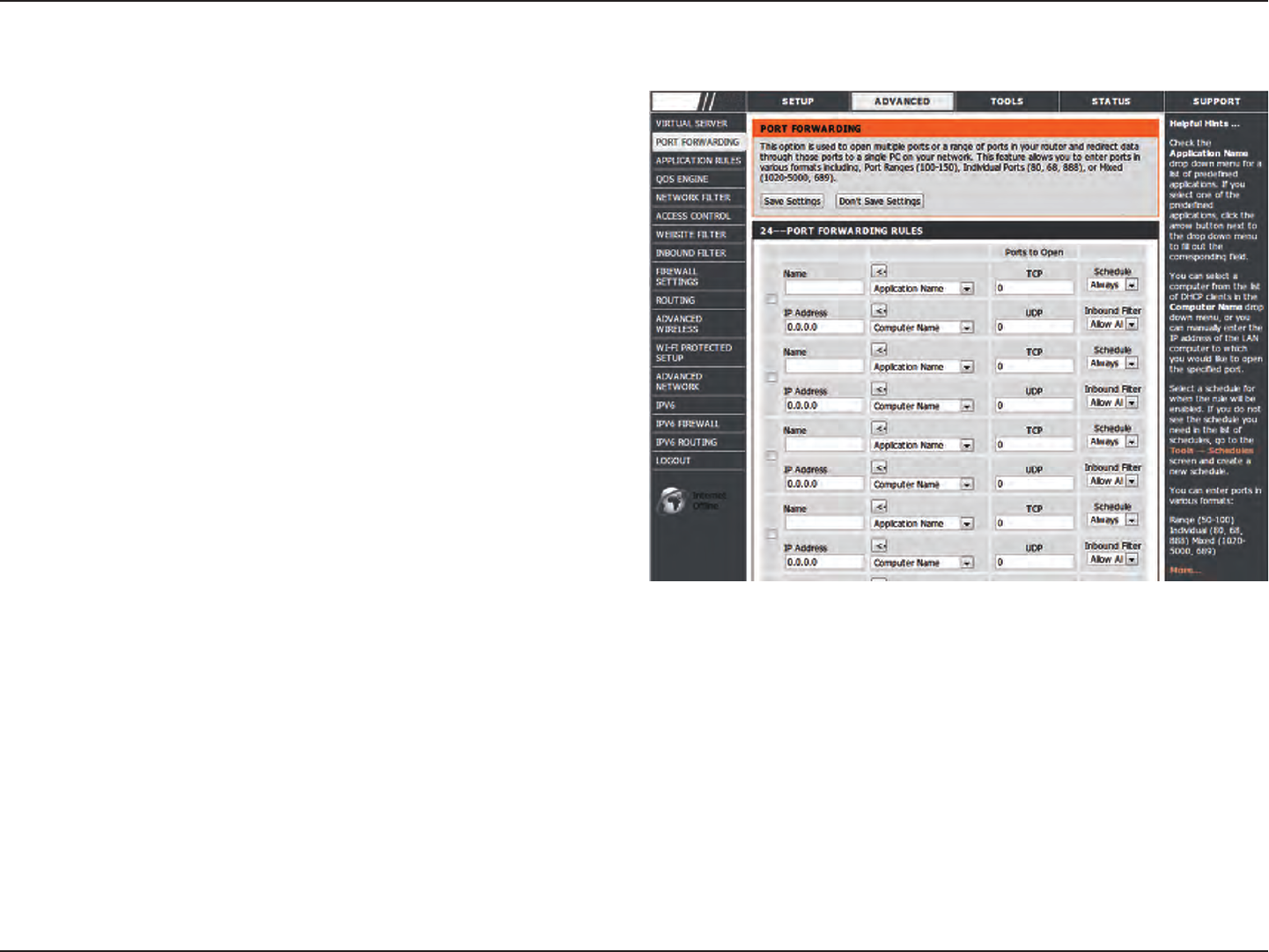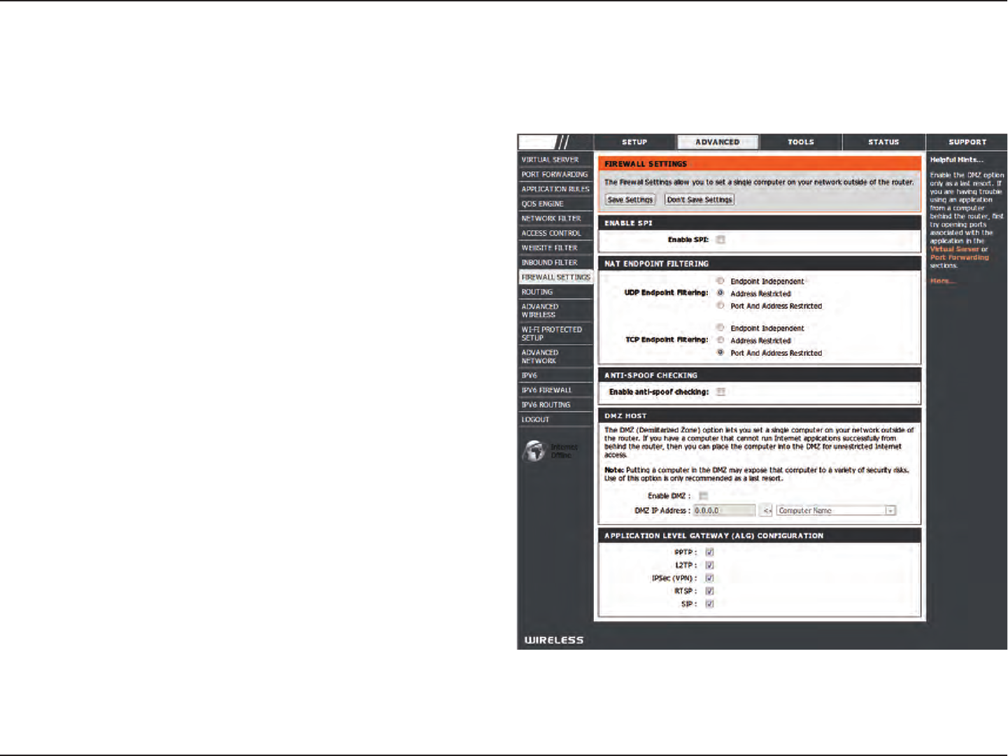 • Advanced Firewall Features - The Web-based user interface displays a number of advanced network