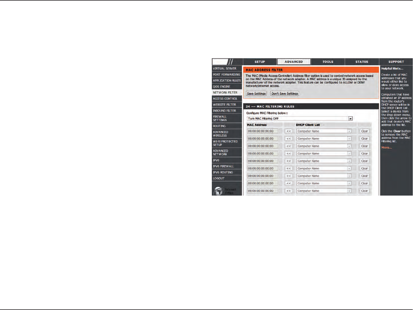 • MAC Filtering