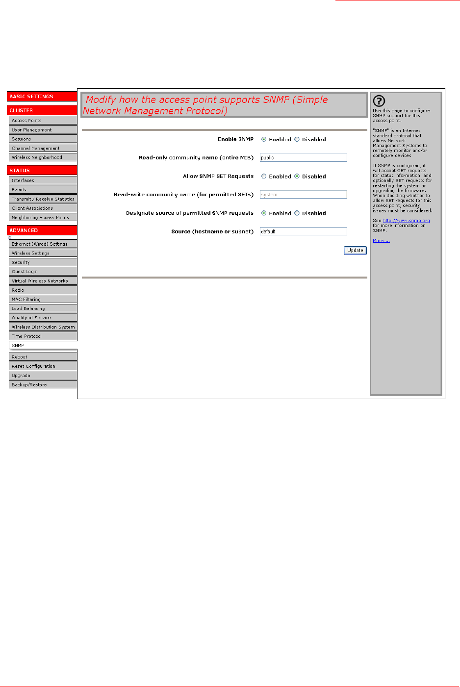 Enable SNMP SNMP provides a way for the access point to store management information