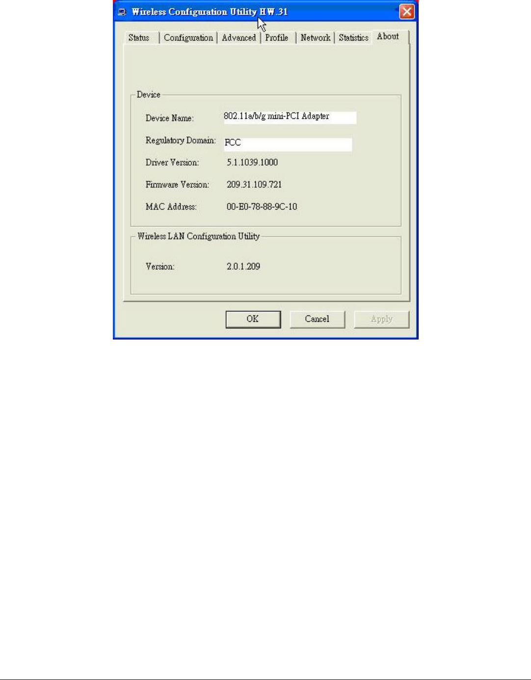 MAC Address and the Utility version.