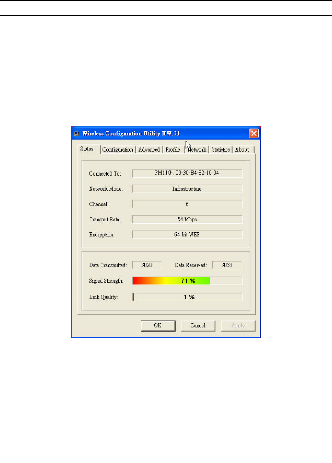Data Transfer Rate 1, 2, 5.5, 6, 9, 11, 12, 18, 24, 36, 48, 54Mbps (auto sense)