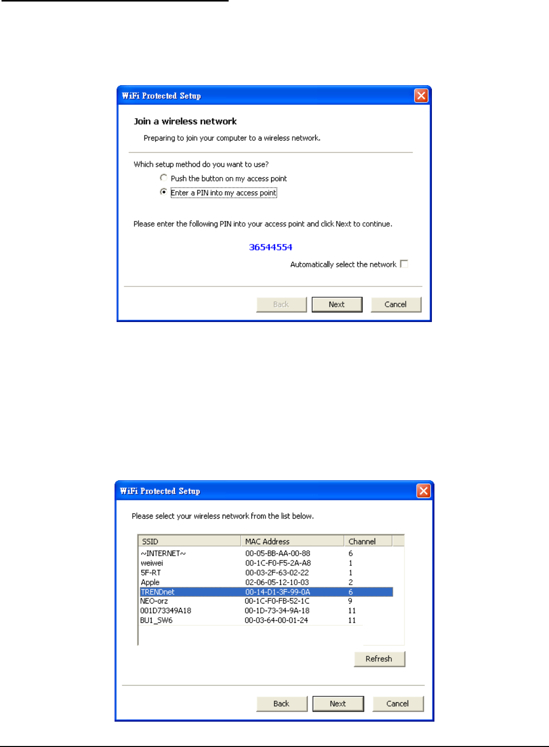 1) Selected the “Enter a PIN into my access point”, the PIN will be show on the