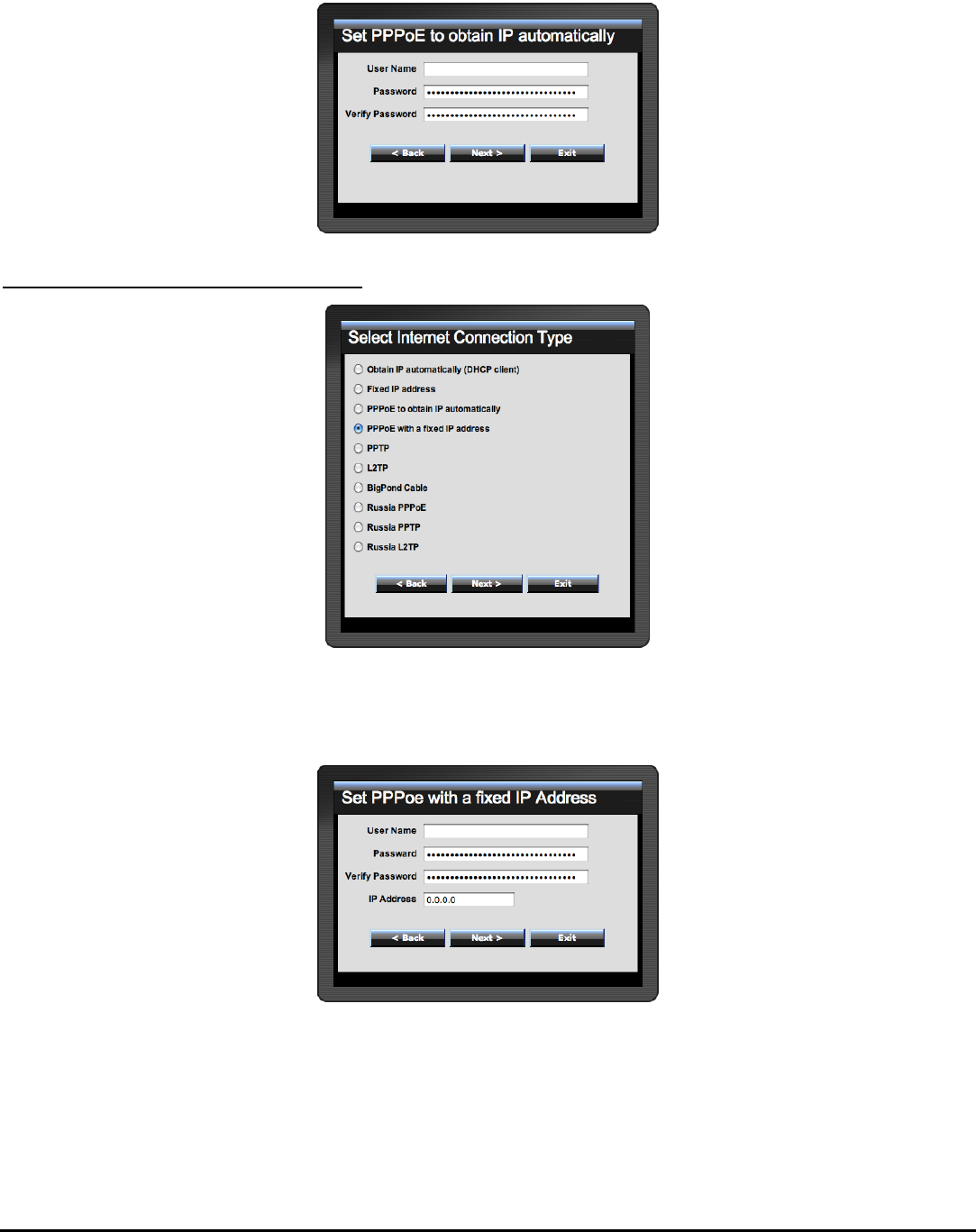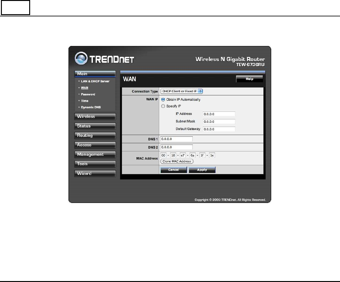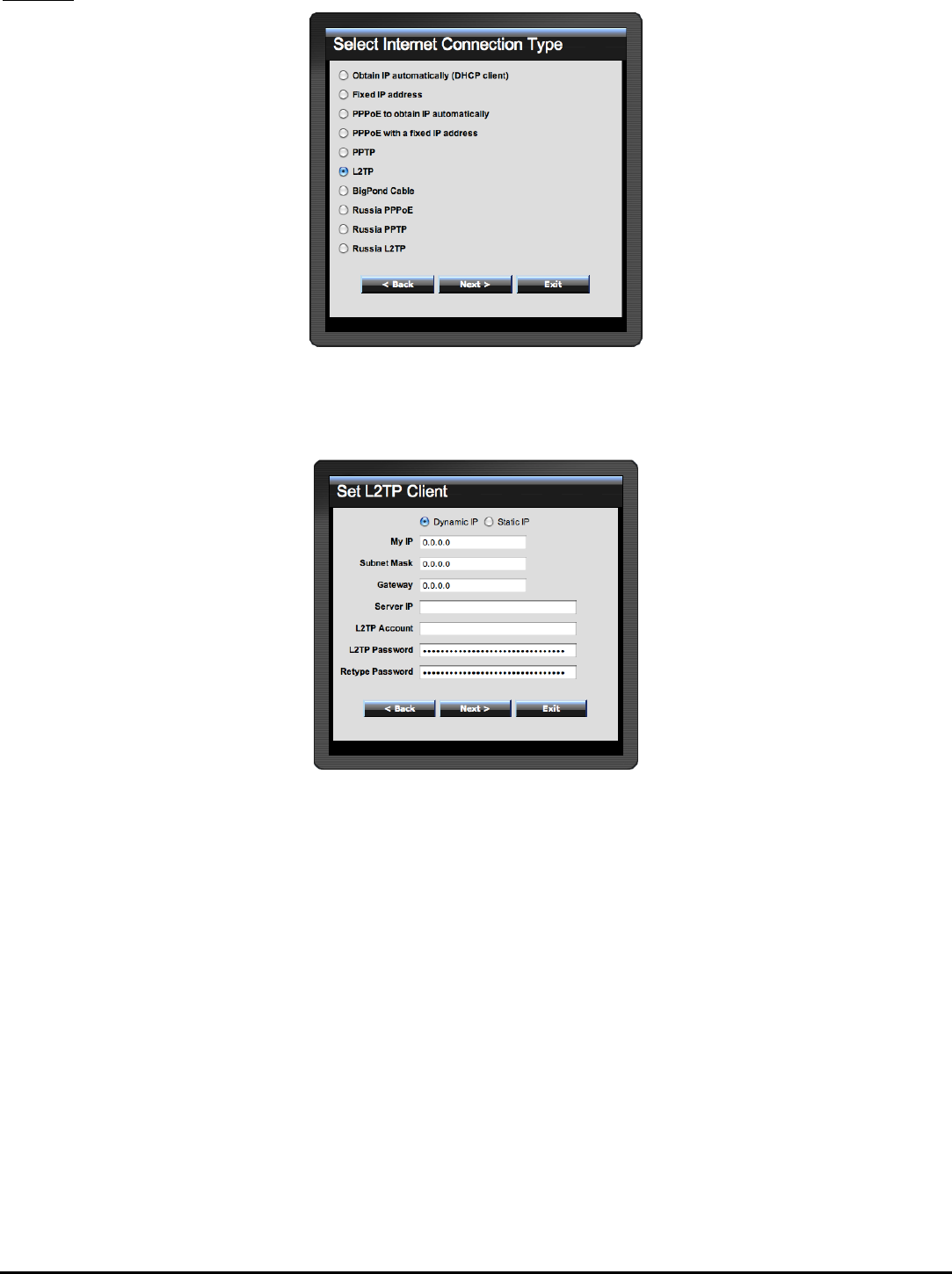 Type Dynamic IP, Static (Fixed) IP, PPPoE, PPTP, L2TP,