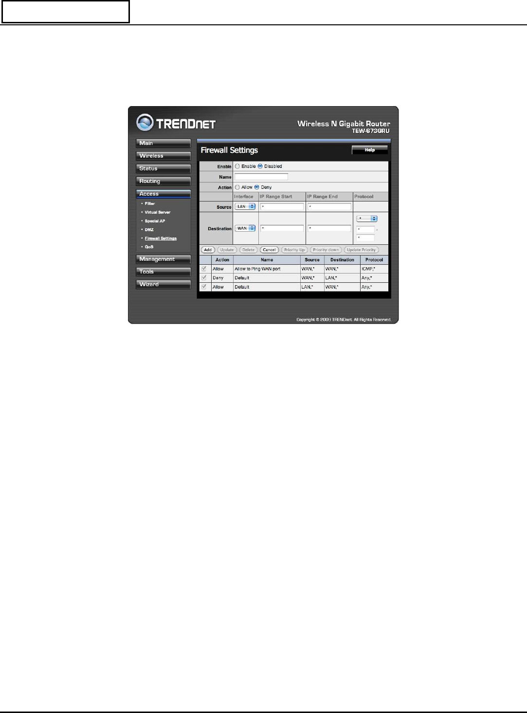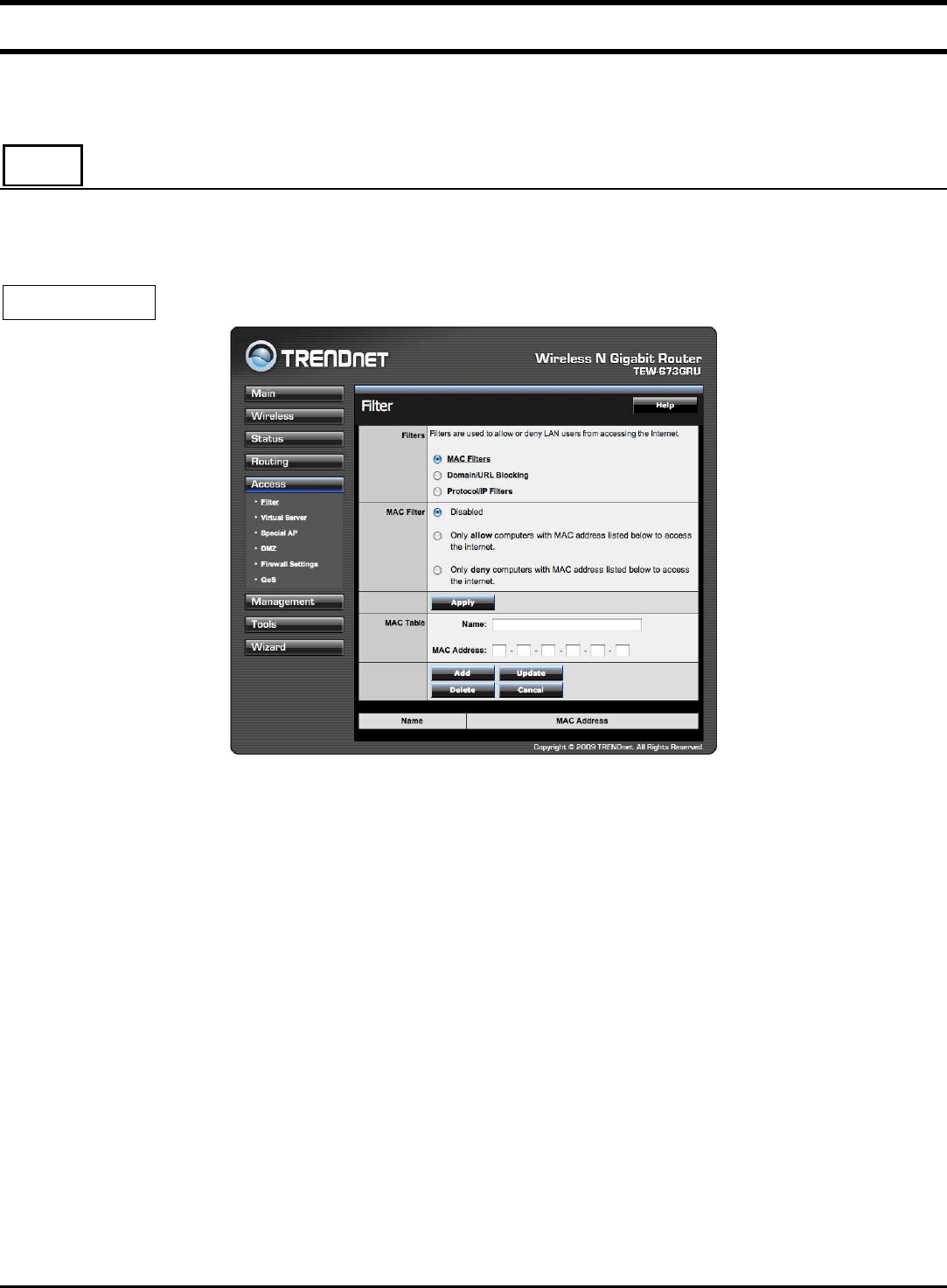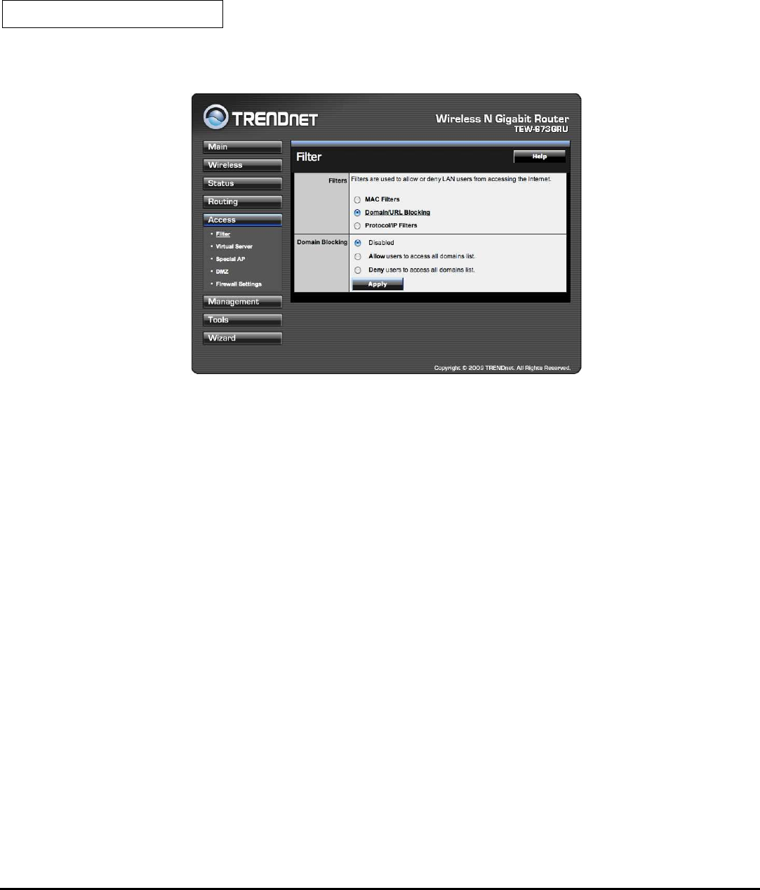 Control MAC Address Filter, Domain/URL Filter, Protocol/IP