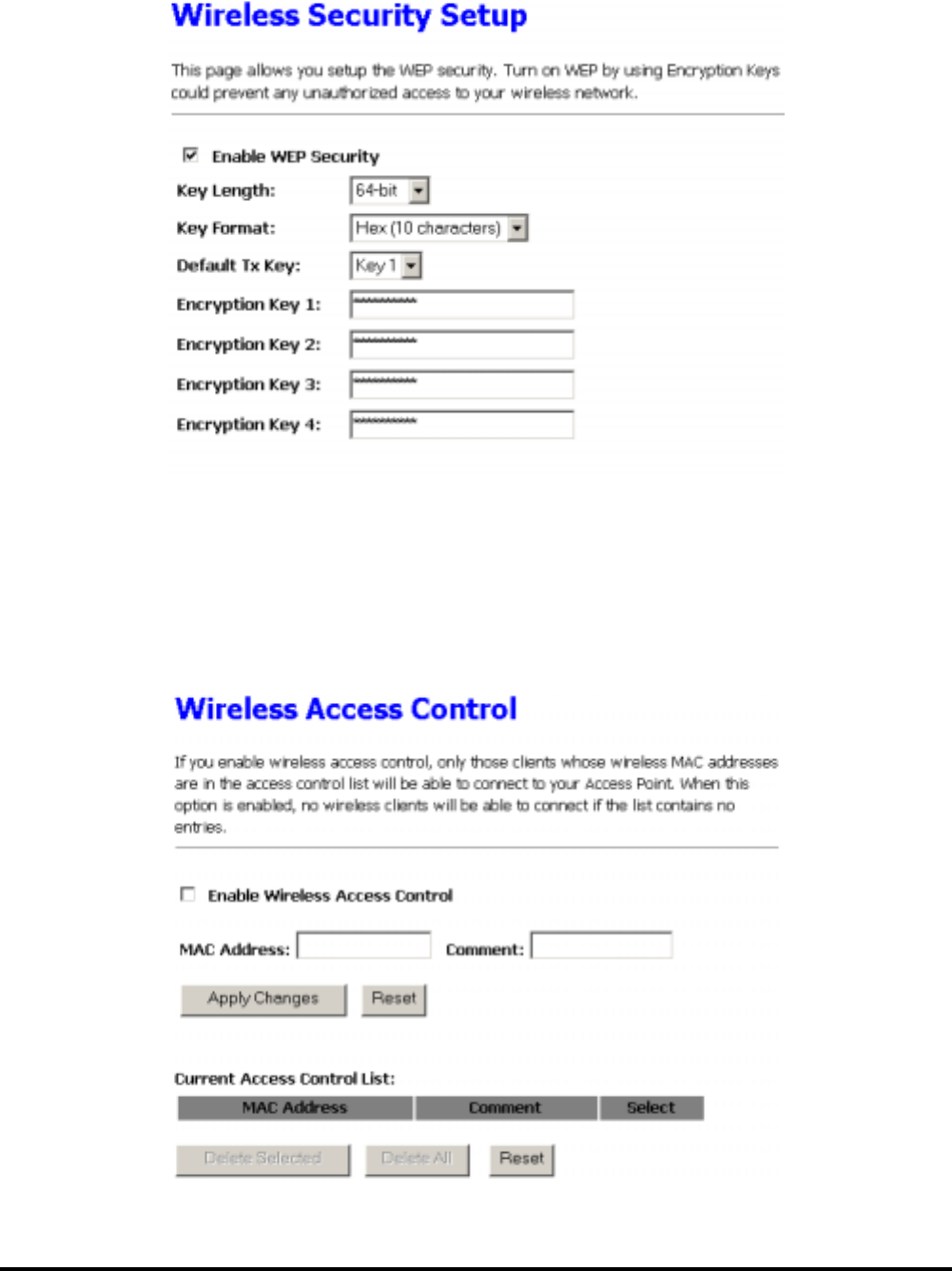 Access Control function allows clients whose MAC addresses in the