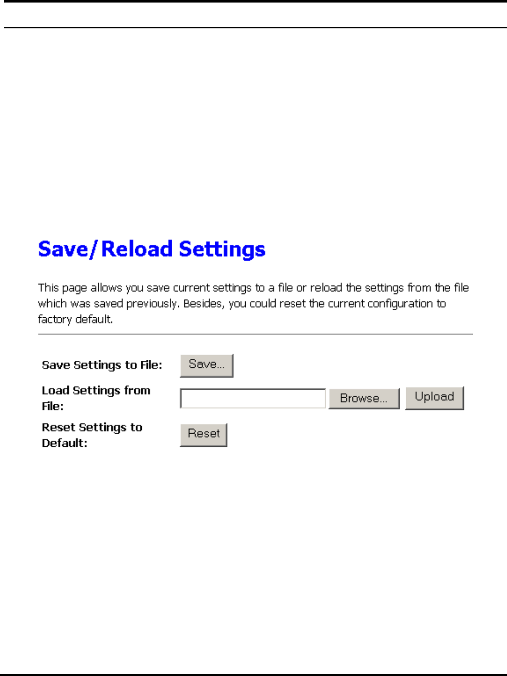 This screen allows you to save the current settings, load the settings