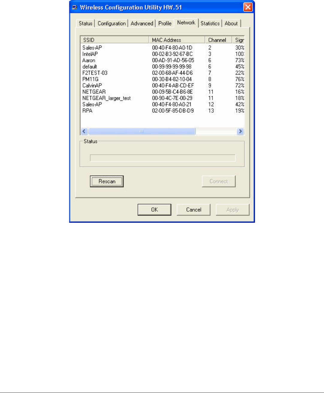 The screen shows all the Wireless devices around your Wireless Cardbus Adapter.