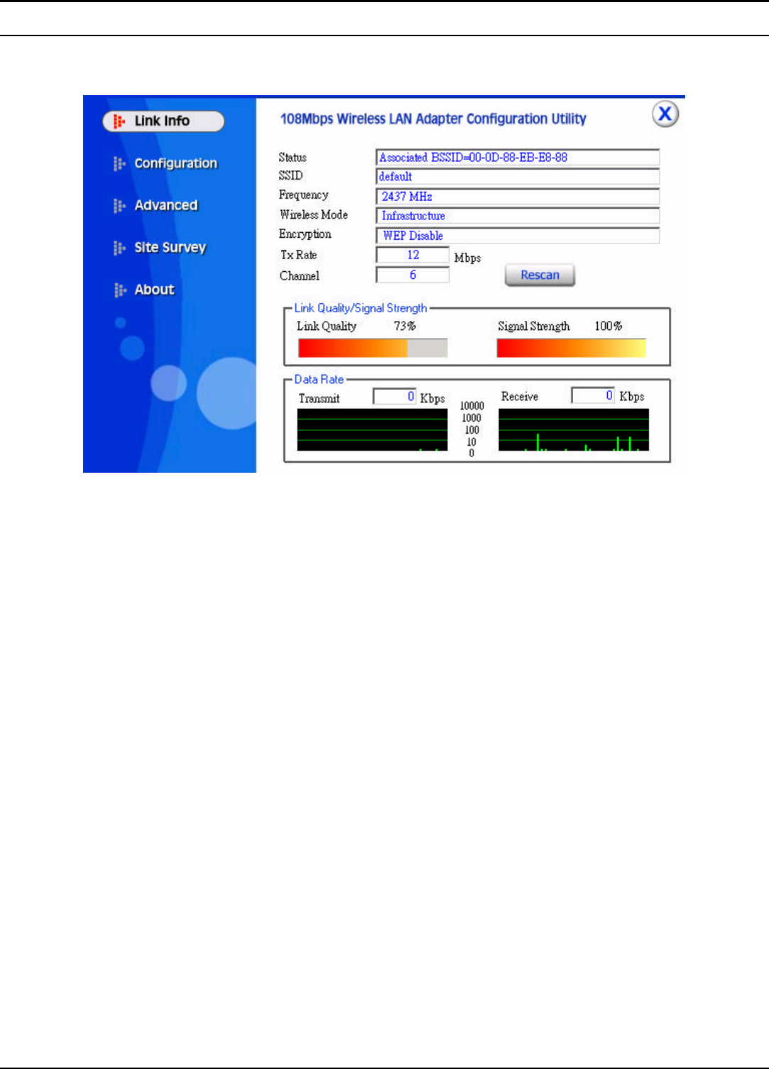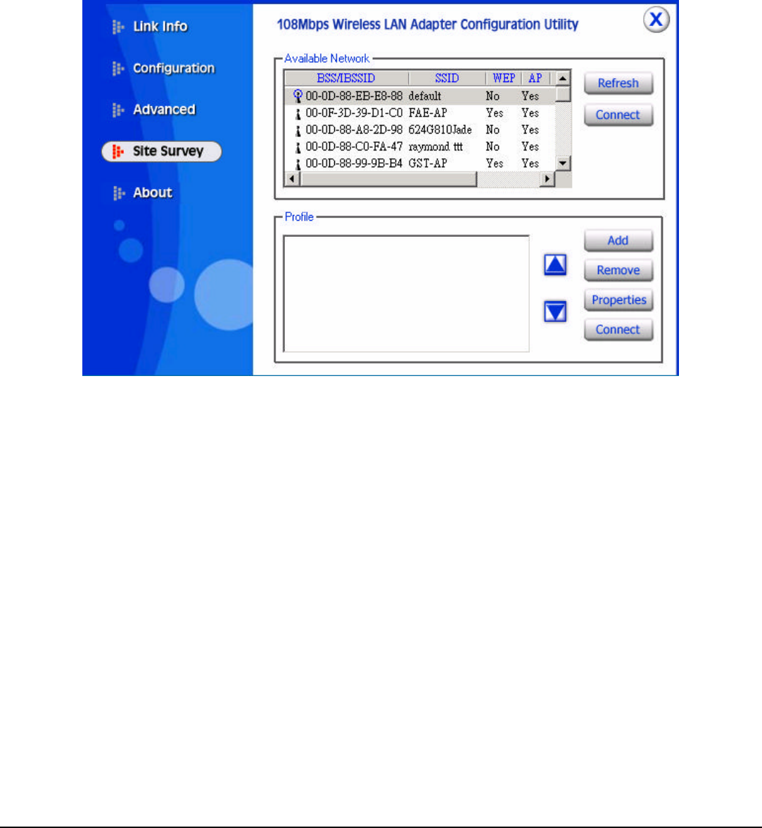 Link Quality: Shows the link quality of the 108Mbps wireless LAN PC card with