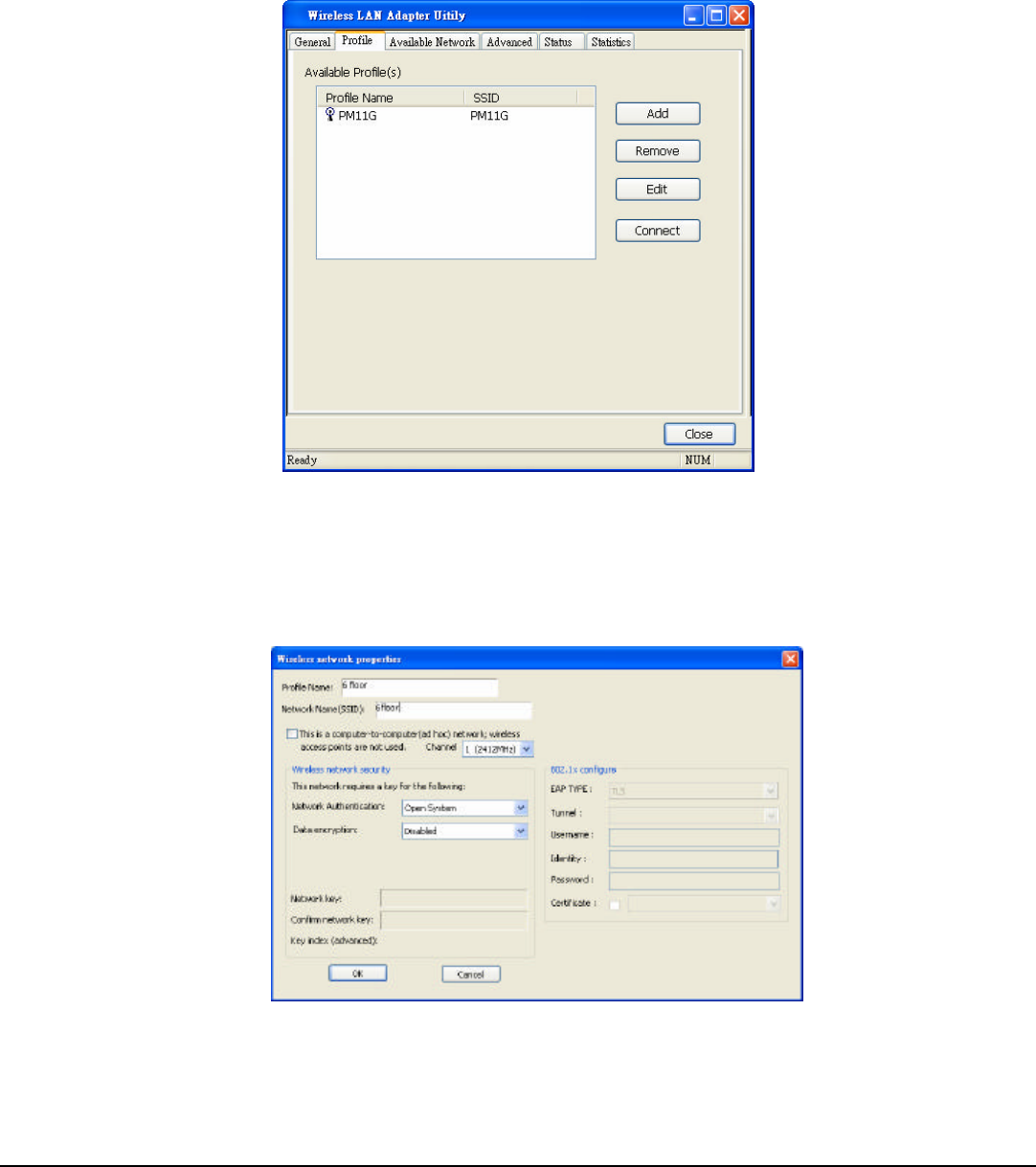 Network Name(SSID) or Security settings than click ”OK” to save the profile.