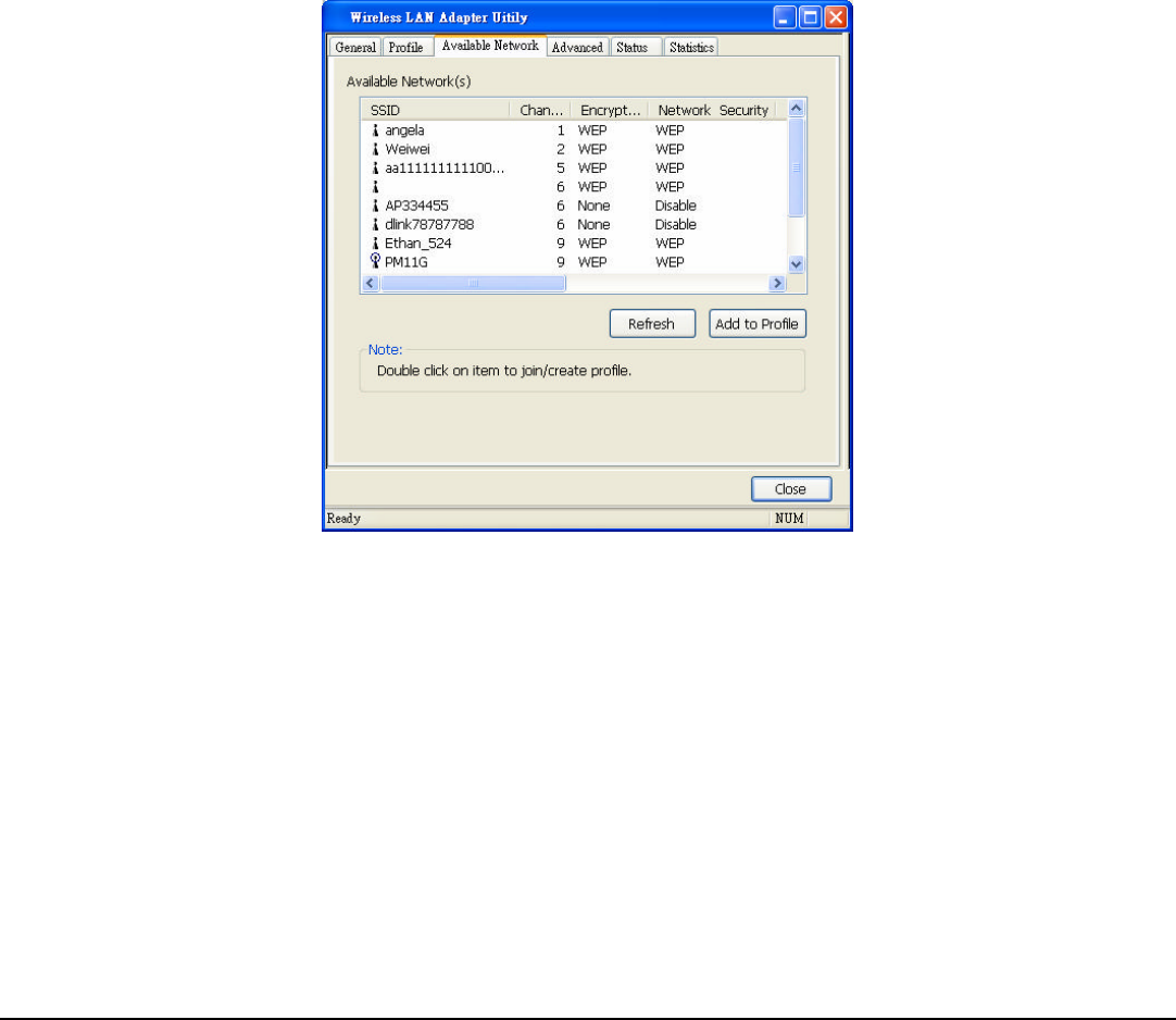 The screen shows all the Wireless LAN devices around your Wireless LAN USB