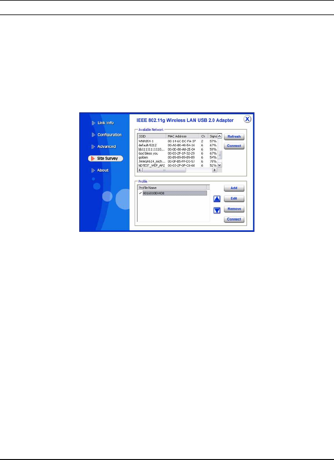Adapter. The information of the wireless devices includes the SSID, MAC Address,