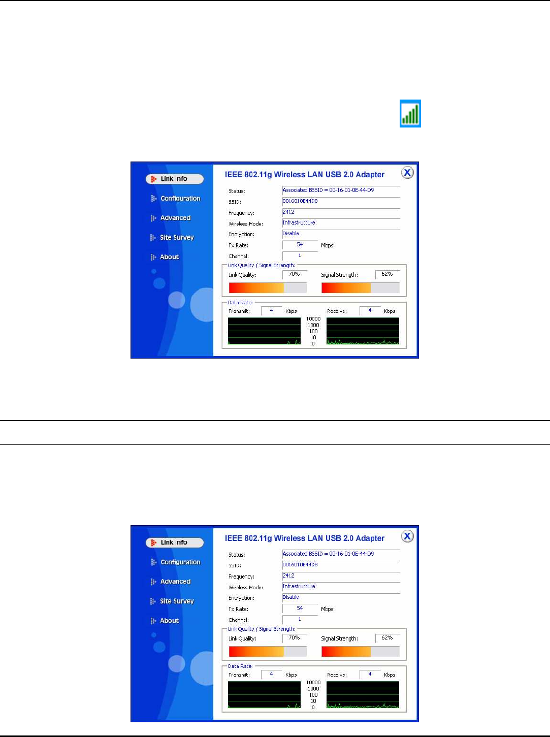 The About section shows you the 802.11g Wireless USB 2.0 Adapter information,