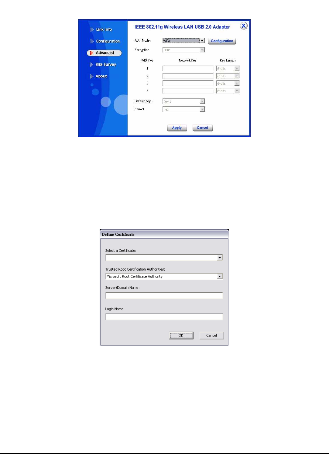 The Advanced settings help you to control the Wireless Adapter to adjust with