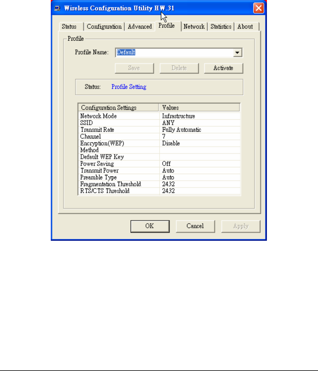 click “Save” and then click “Apply” when a profile is done. You can click “Delete”
