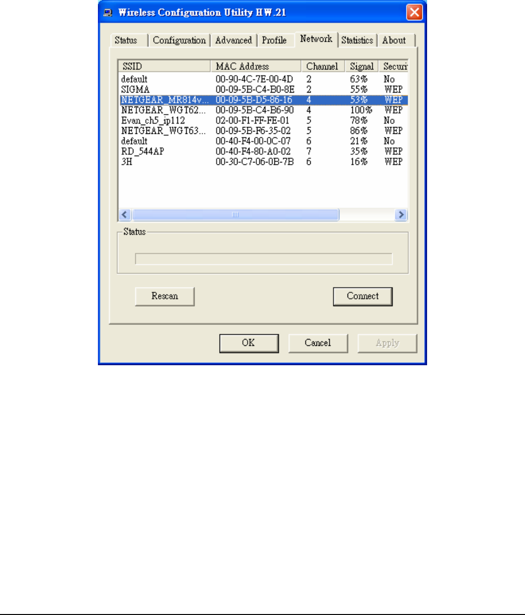 The screen shows all the Wireless devices around your Wireless Adapter. The