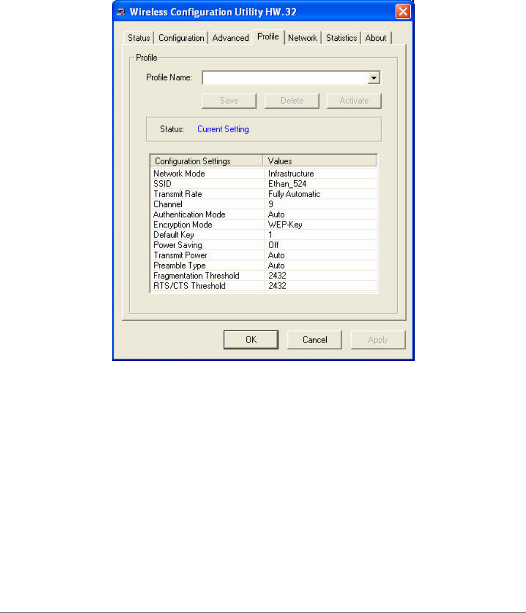 previously defined profile. Type a name in the Profile Name field to create a profile,