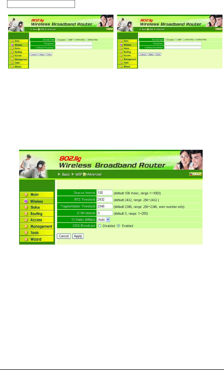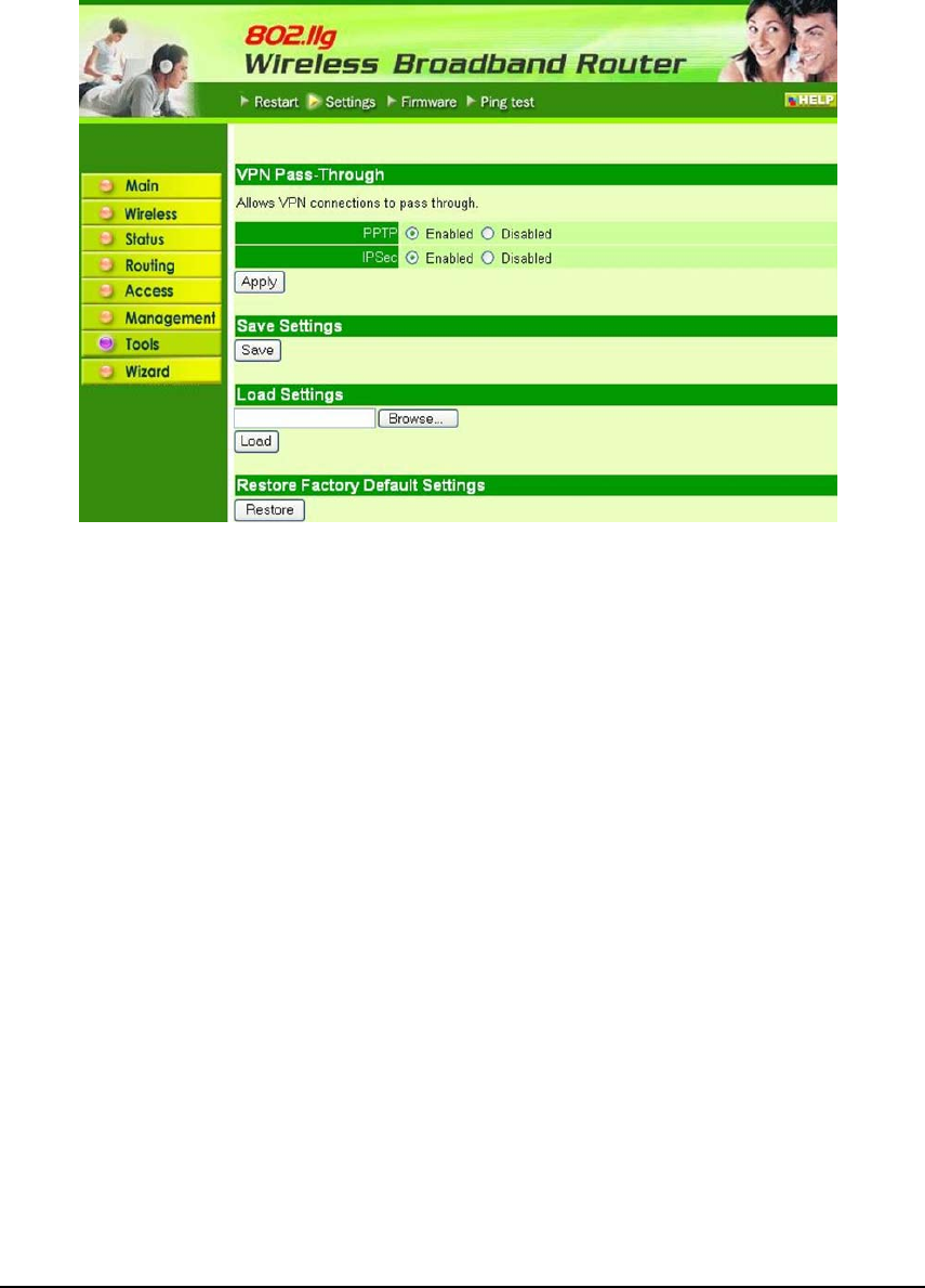 VPN Pass-Through: Choose enable or disable on the PPTP or IPSec.