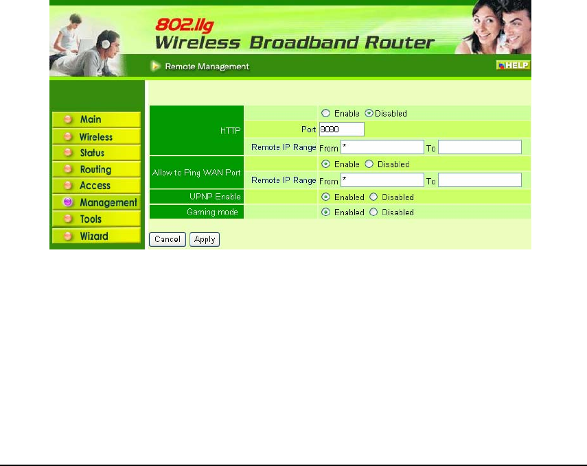 HTTP: Enable or Disable user to management the WLAN Router form WAN
