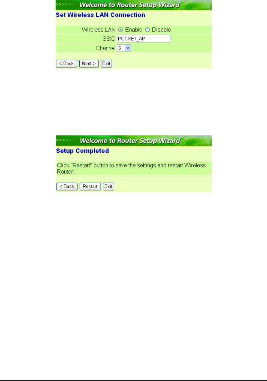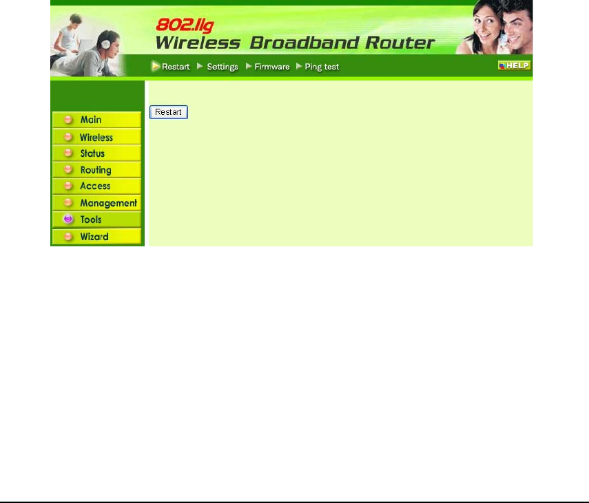 Wireless router restarted. Please click “Restart” to reboot the router. If user