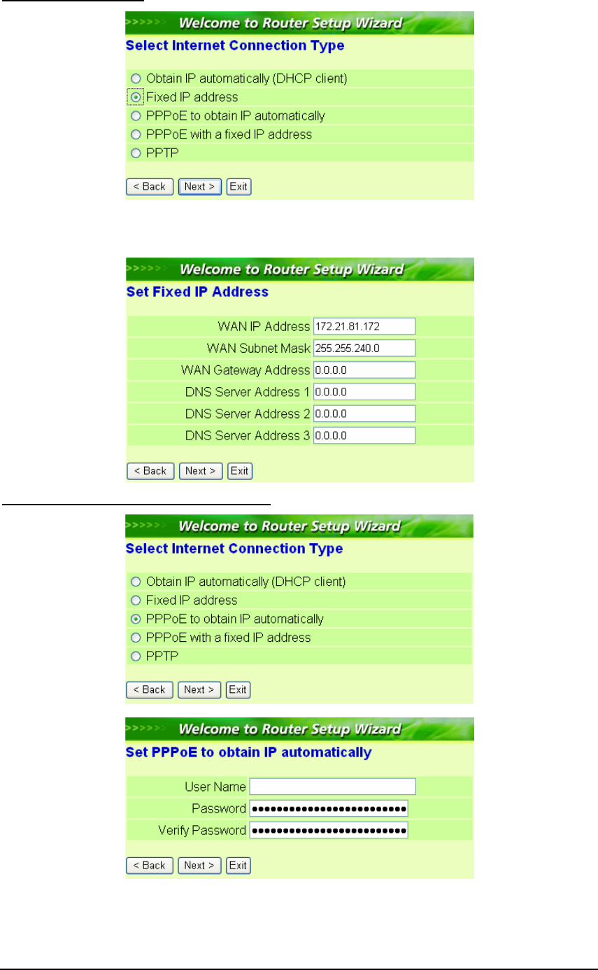 automatically; Fixed IP address; PPPoE to obtain IP automatically; PPPoE with