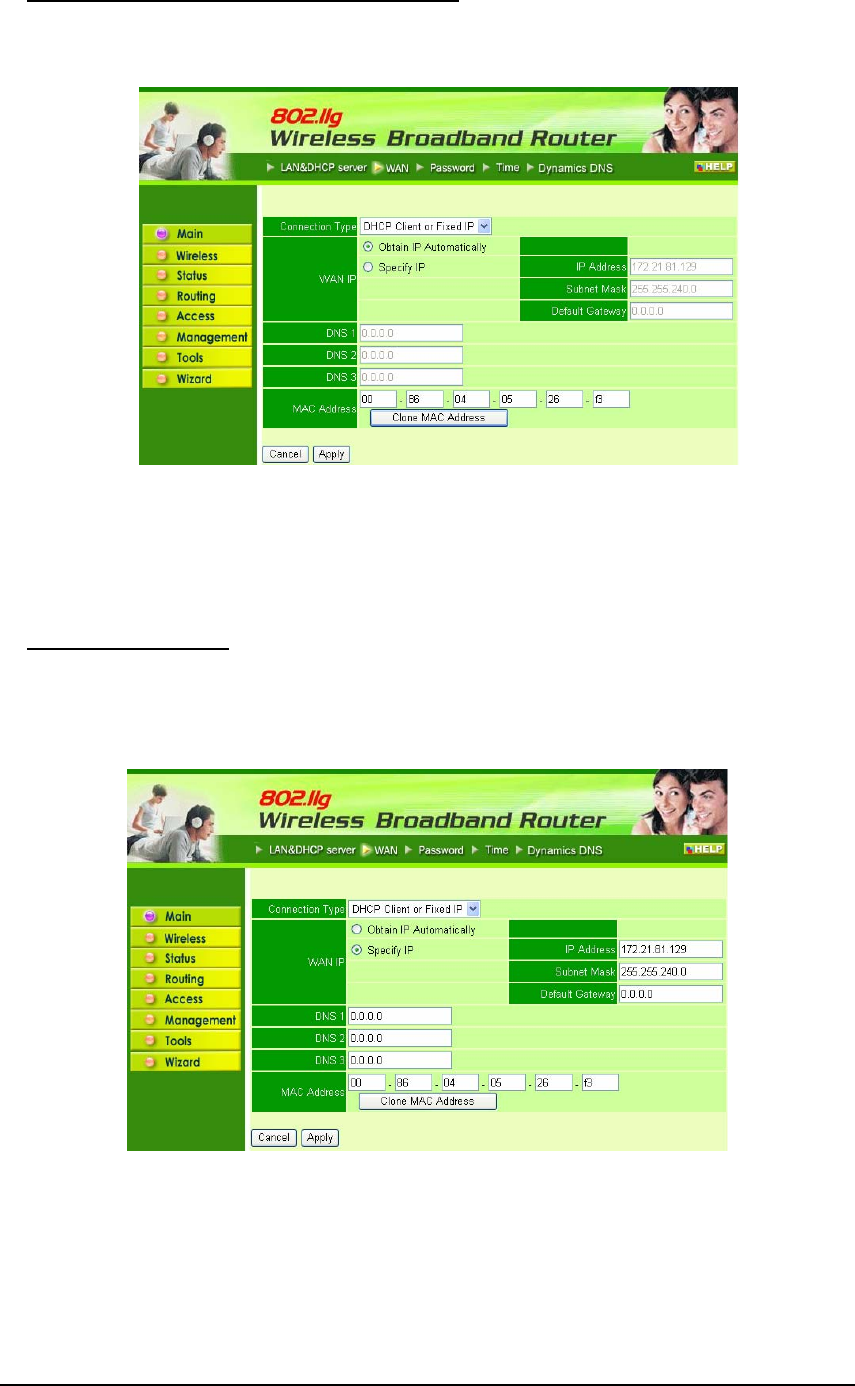 Select how the router will set up the Internet connection: Obtained IP