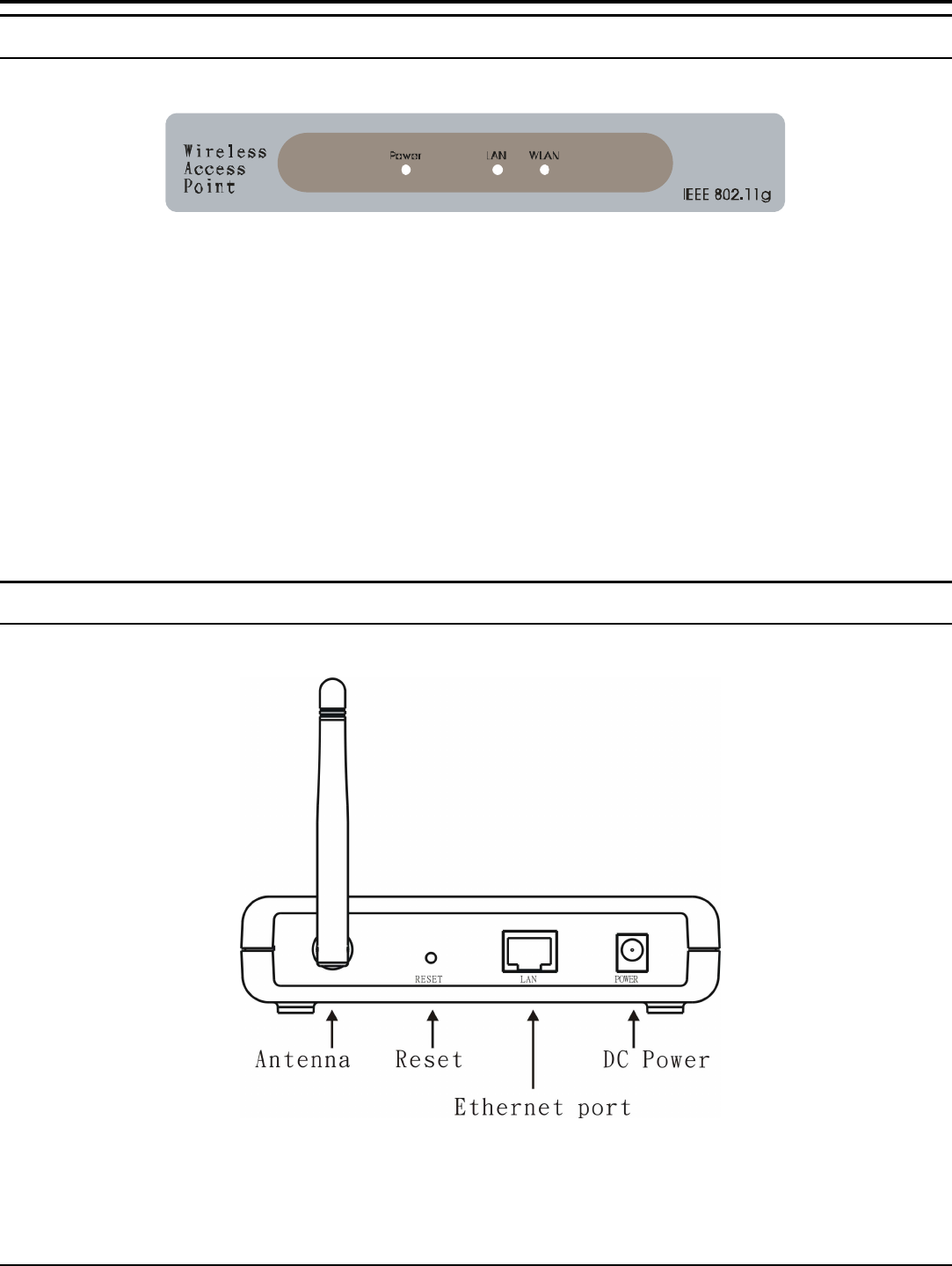 LED Indicators: Power, LAN (Link/Activity), WLAN (Link)