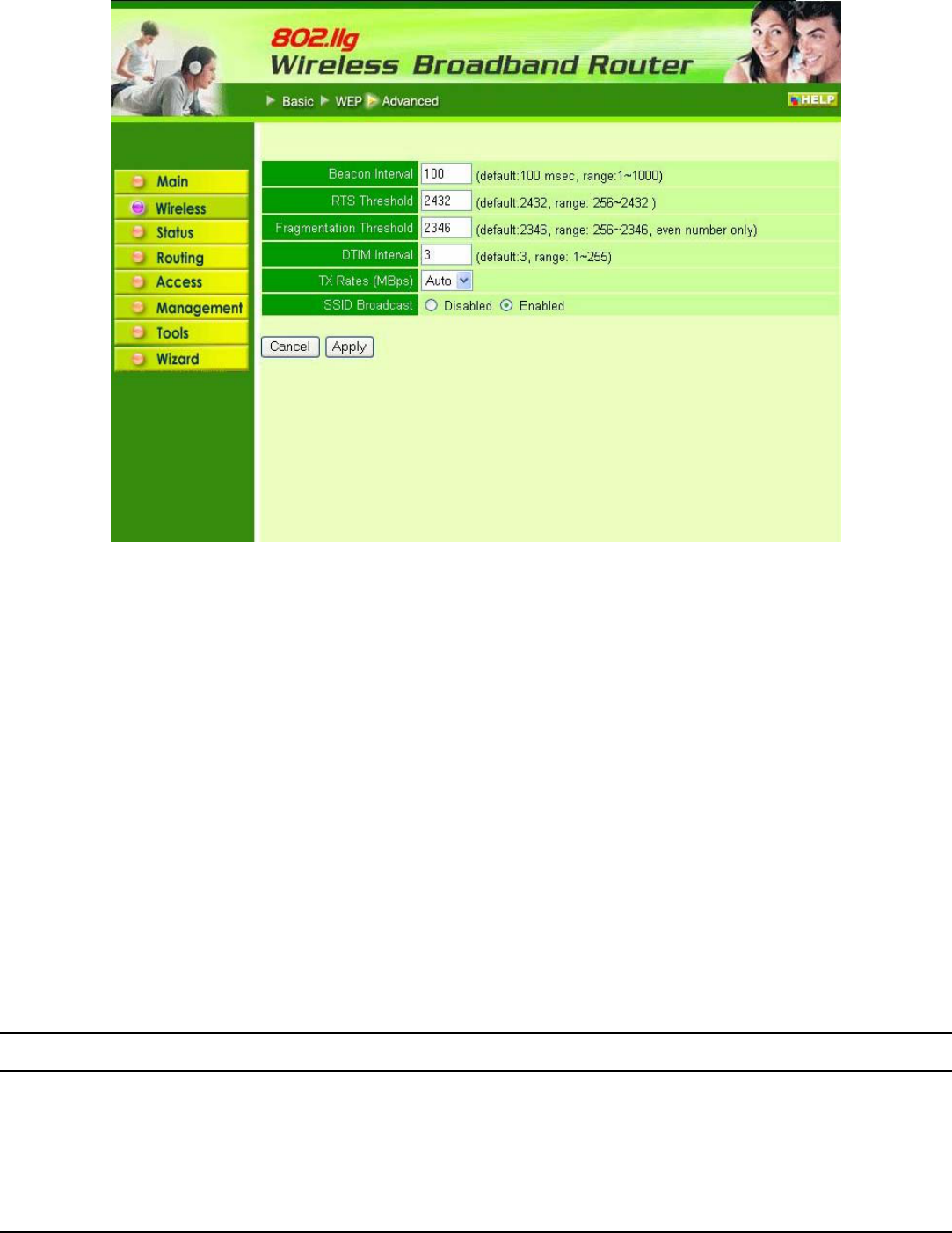 802.11g: 6, 9, 12, 18, 24, 36, 48, 54Mbps @802.11g(auto sense)