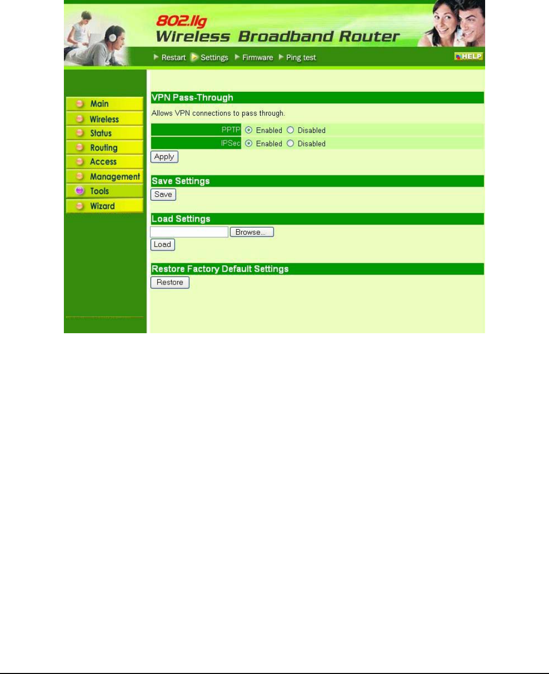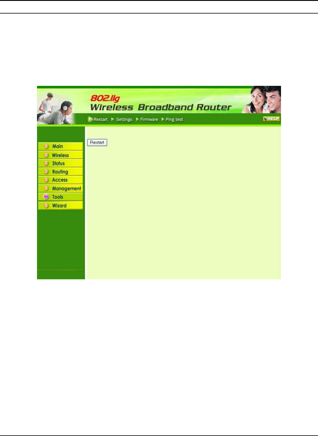 Restore Factory Default Settings: Click “Restore” to restore the default settings. All
