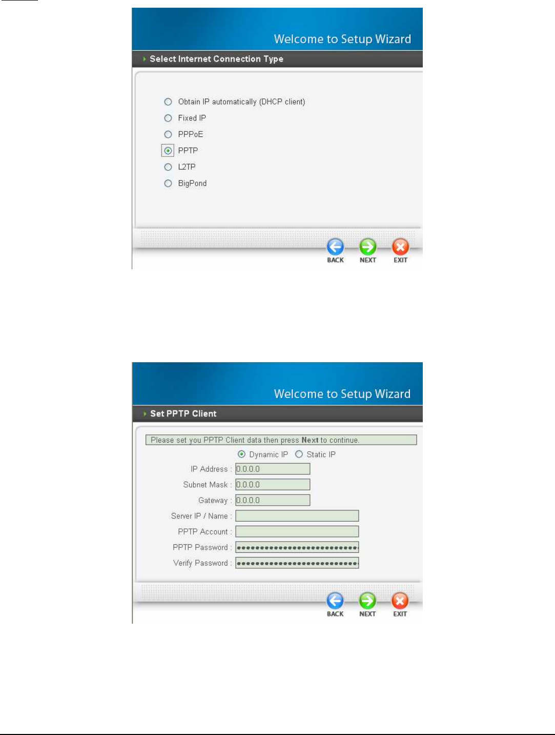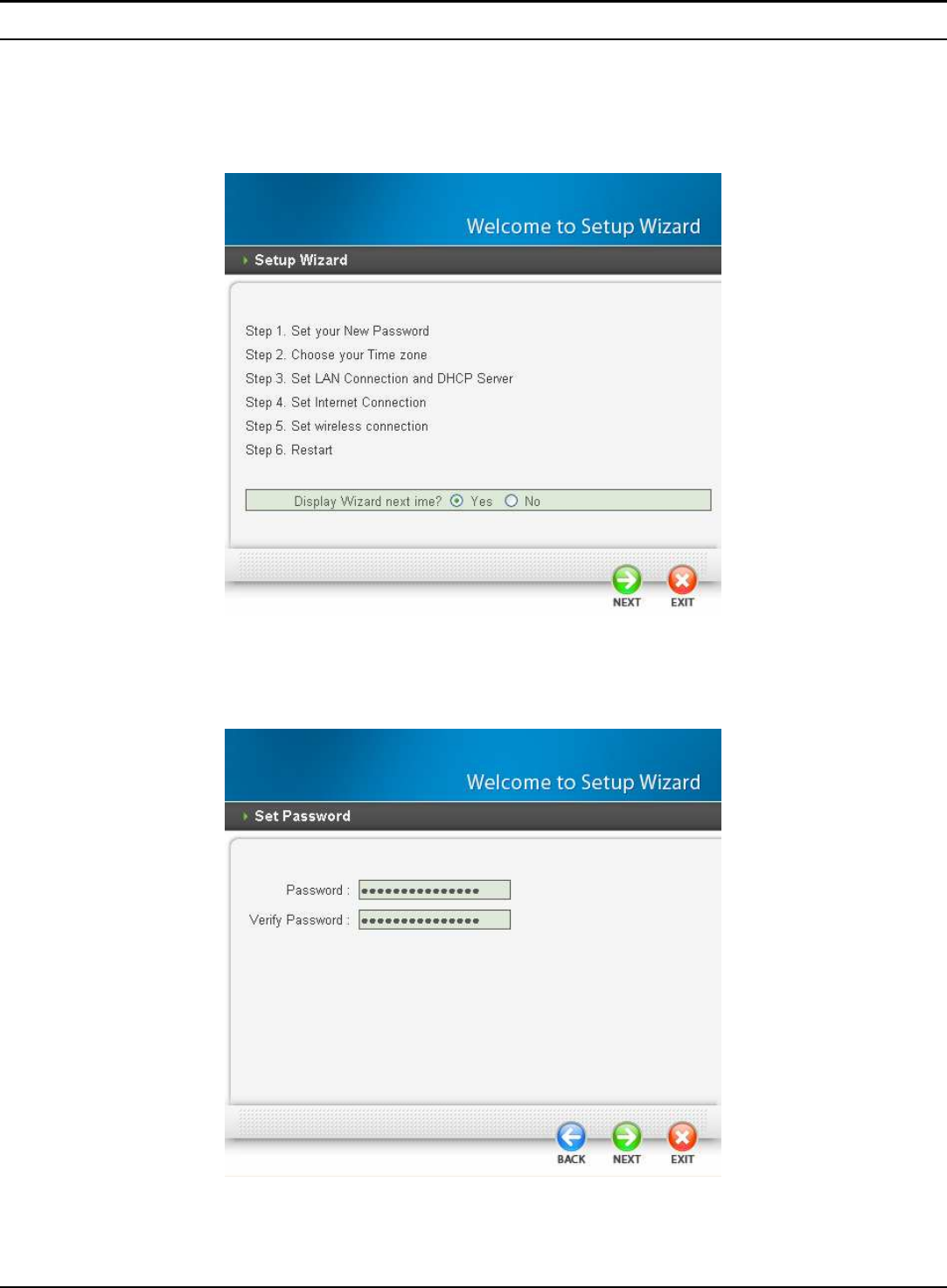 circumstances. User can also load the factory default settings, and run a setup wizard to