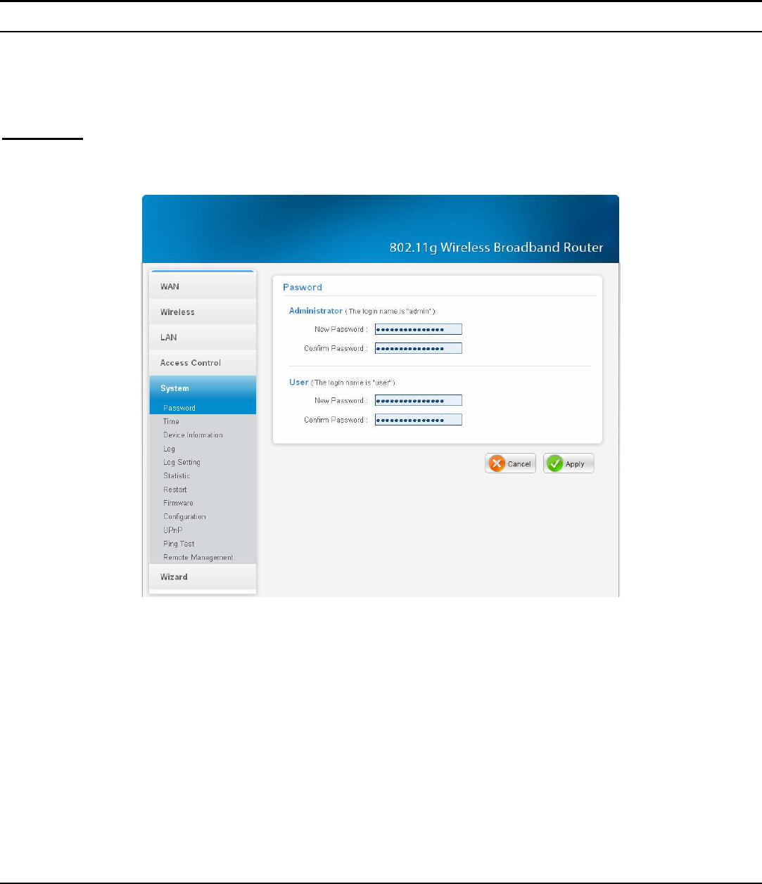WLAN Router can be configured through the WAN via a Web browser. A user name and