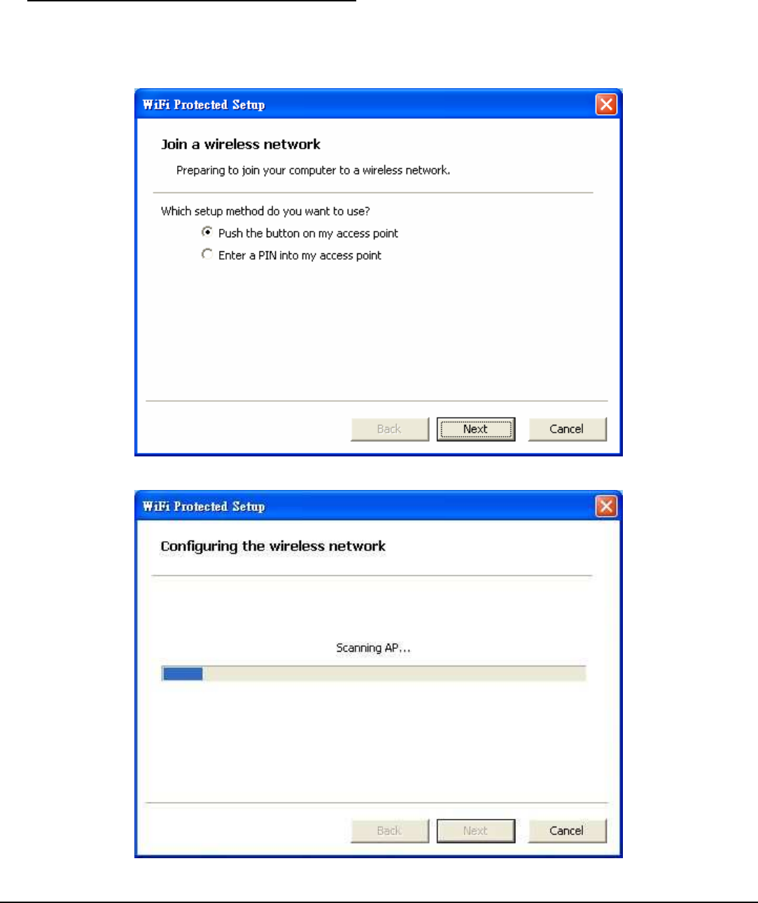 wireless network. There are two methods used in the WPS as below instruction.