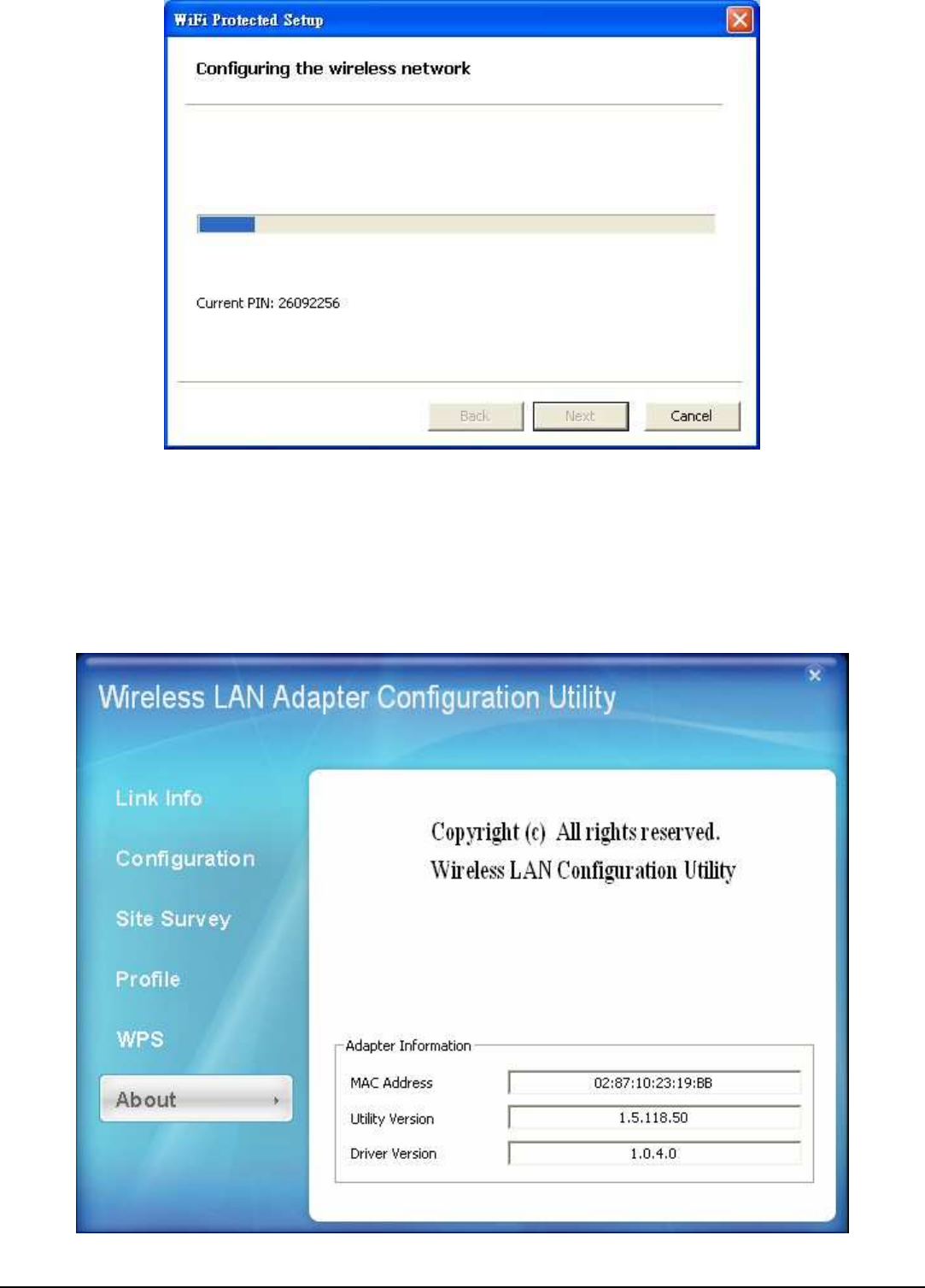 This screen displays information about the 802.11n 2.0 draft Wireless LAN