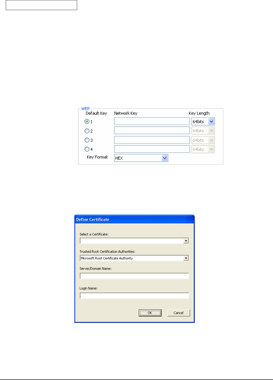 Open System and Shared Key require the user to set a WEP key to exchange