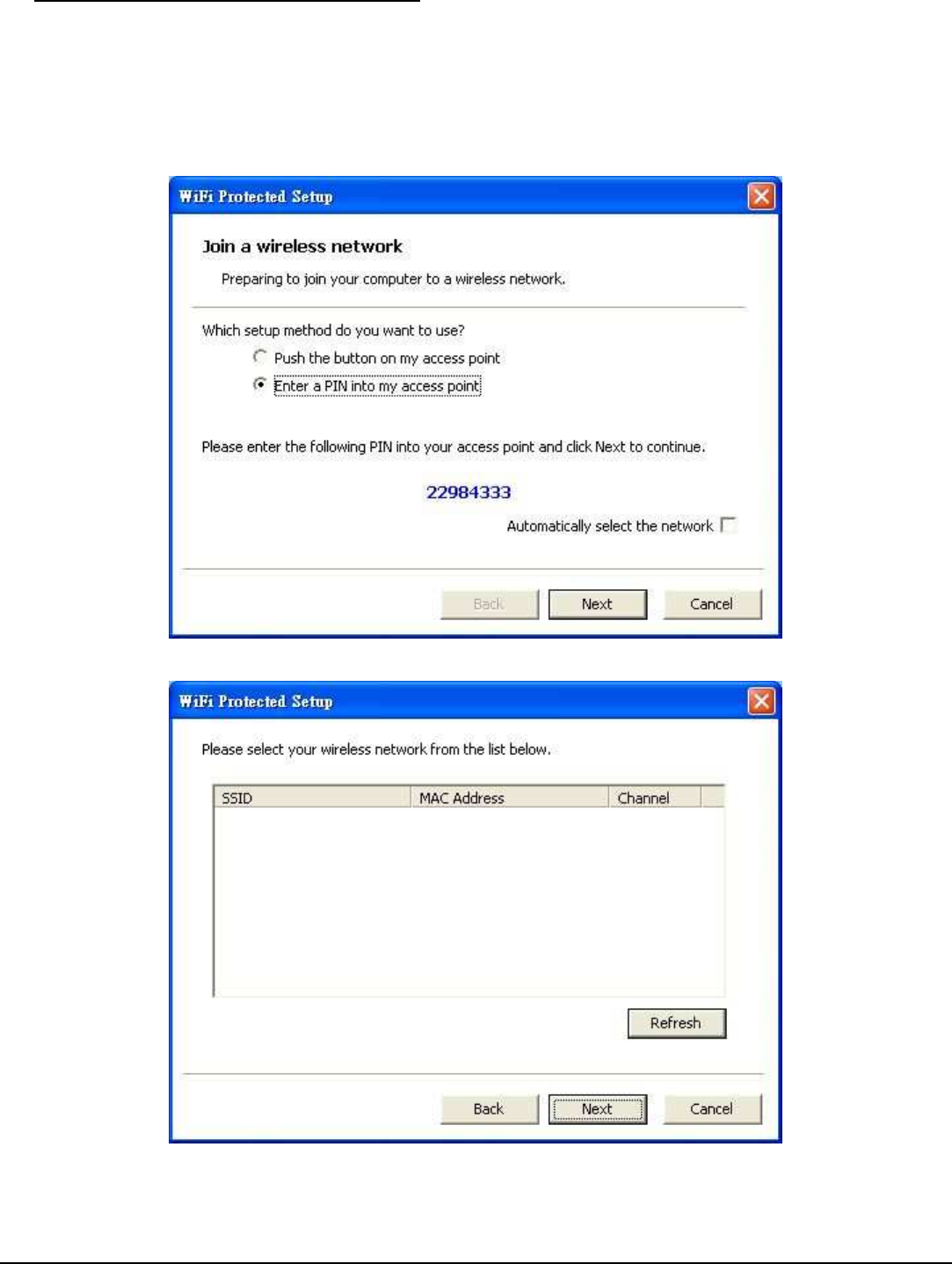 Access Points or Wireless Router. PIN No. is a random numeral.