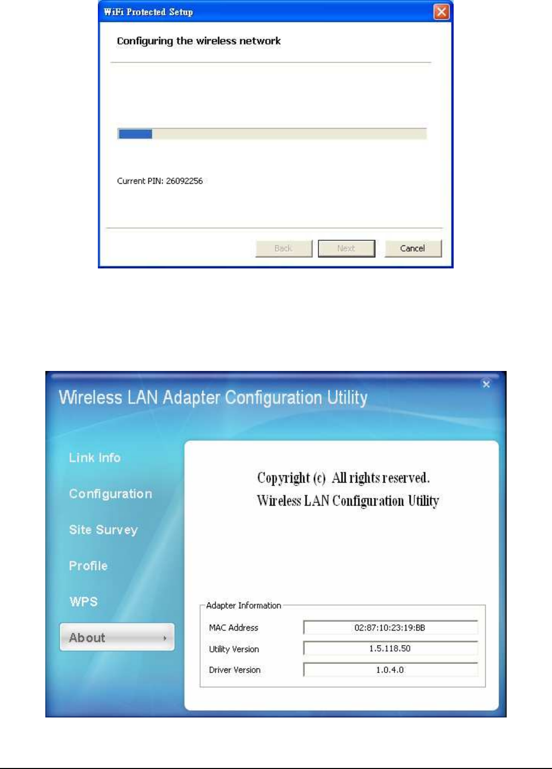 This screen displays information about the 802.11n 2.0 draft Wireless LAN PCI