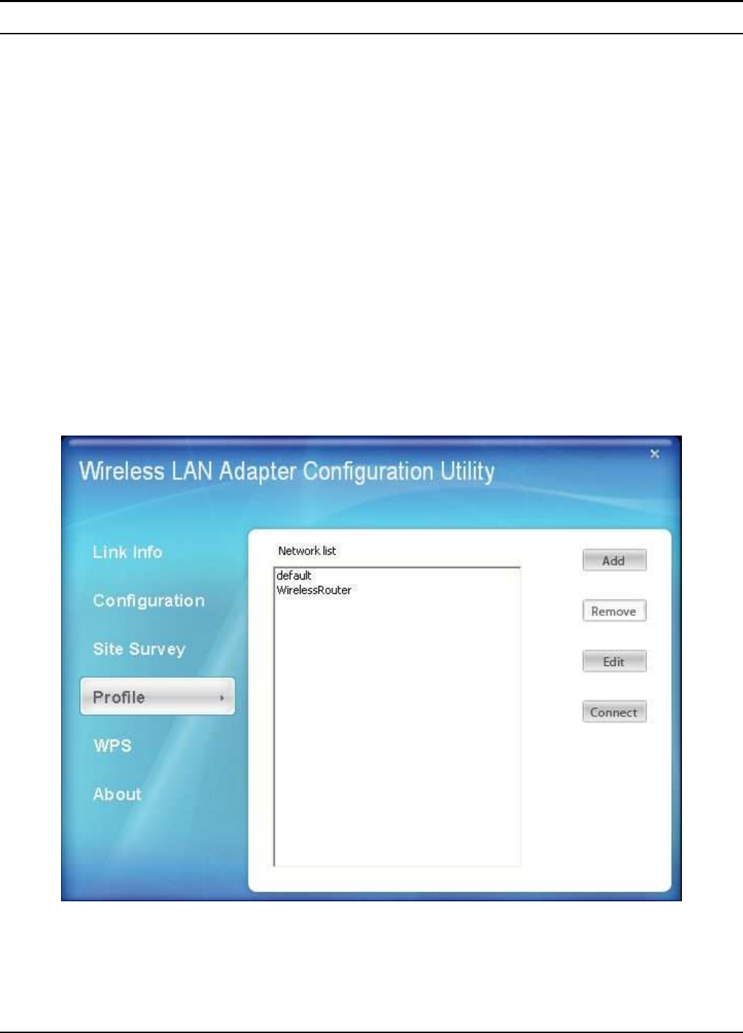 Edit: Edit an exist profile. The screen will back to profile. Edit the SSID and select