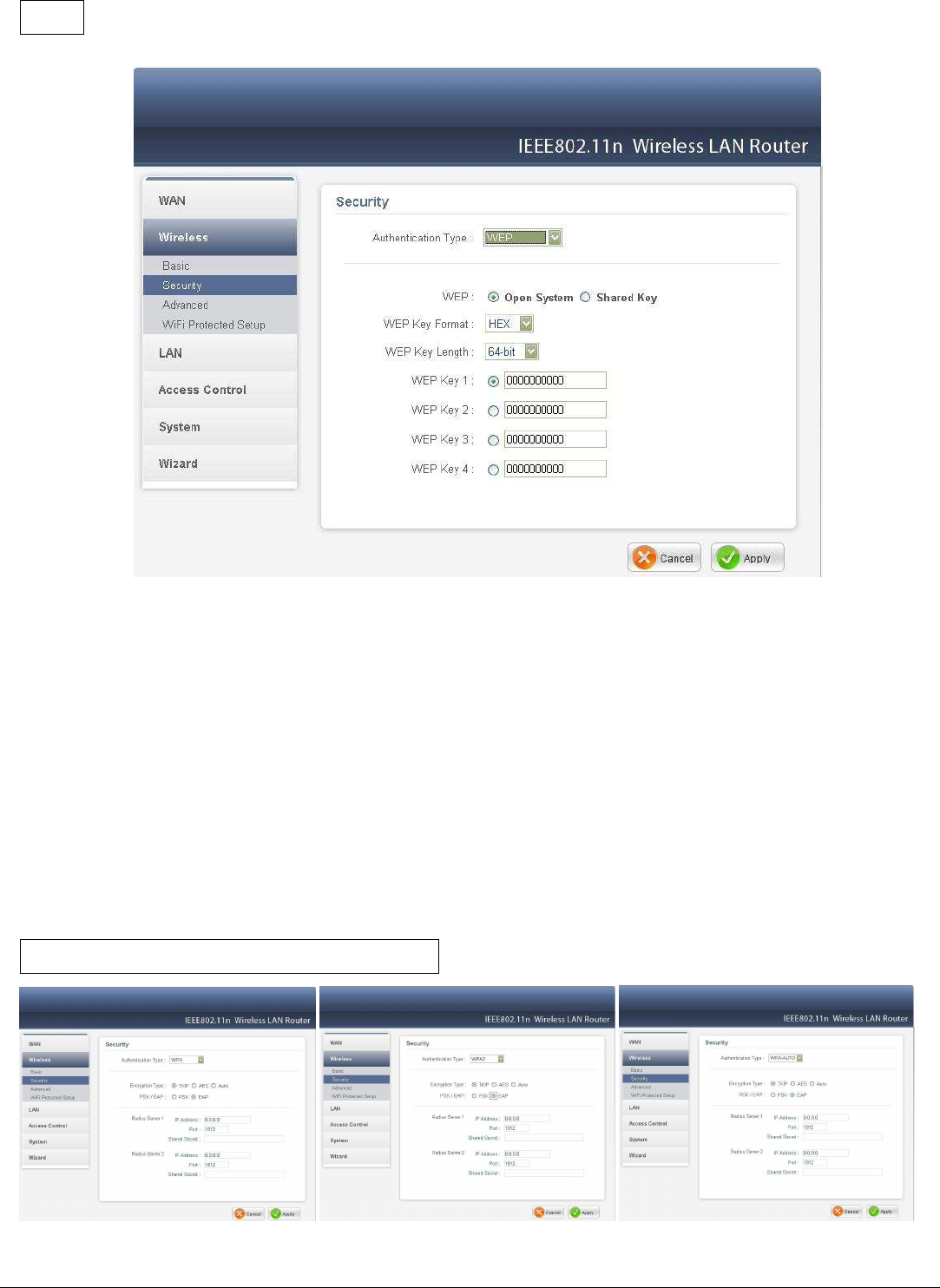 Security 64/128-bits WEP Encryption; WPA, WPA-PSK, WPA2,