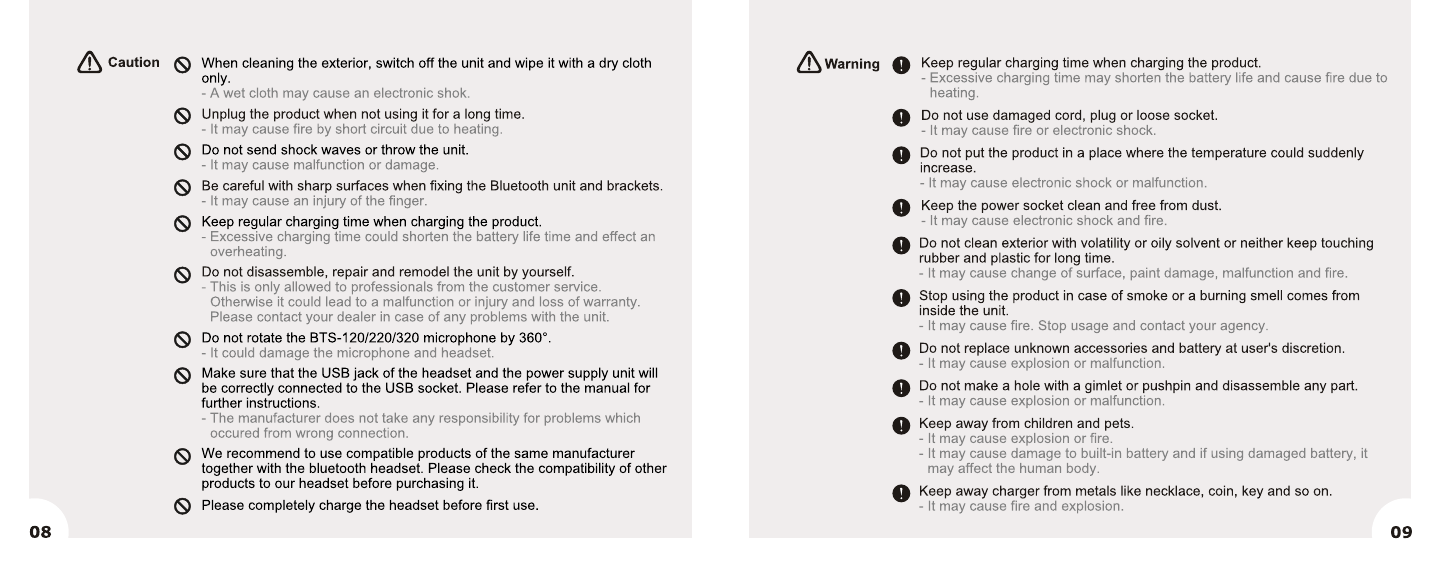 Camos Co., Ltd. iMC Motorcom Headsets BTS 300 manual EN 080811
