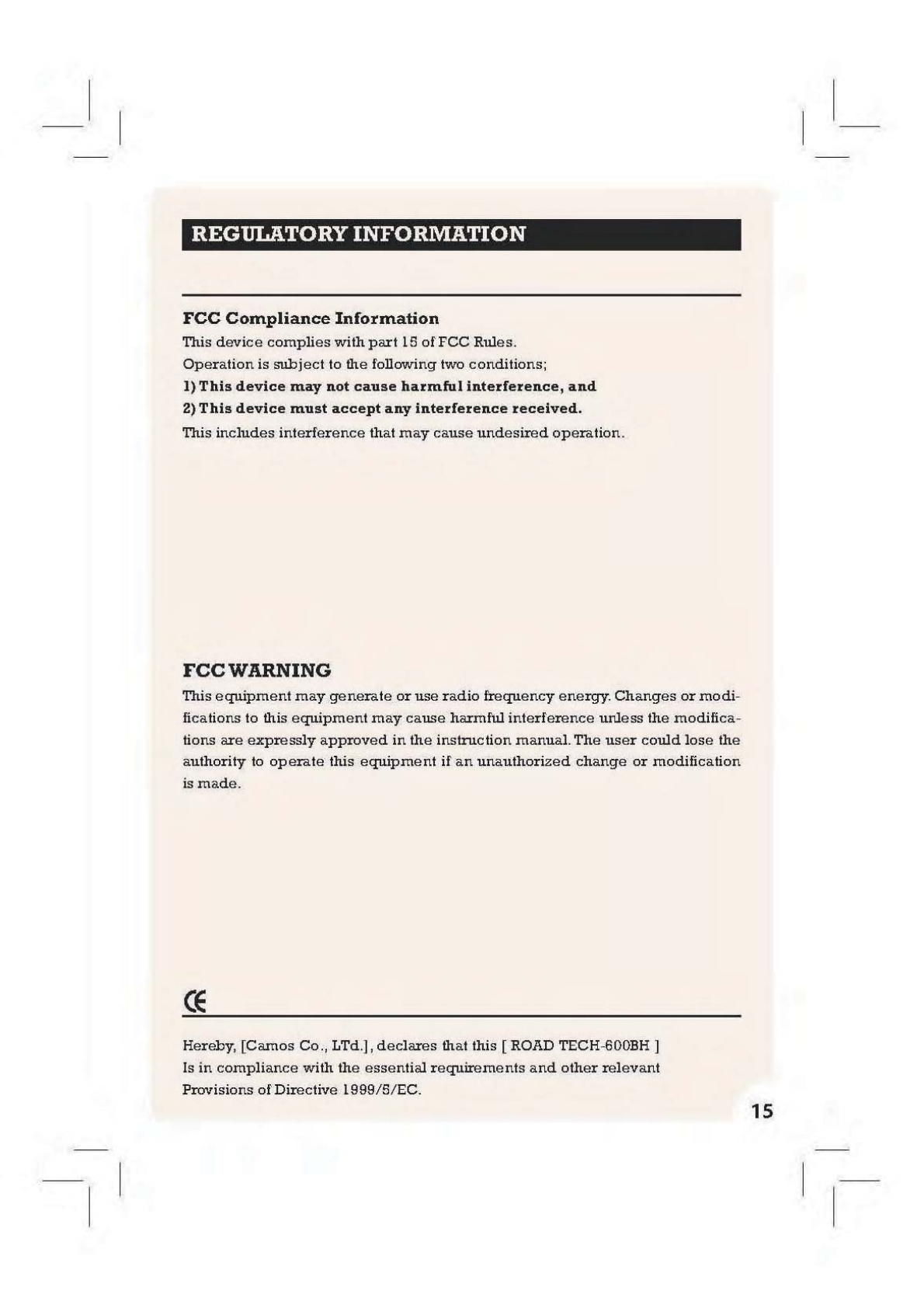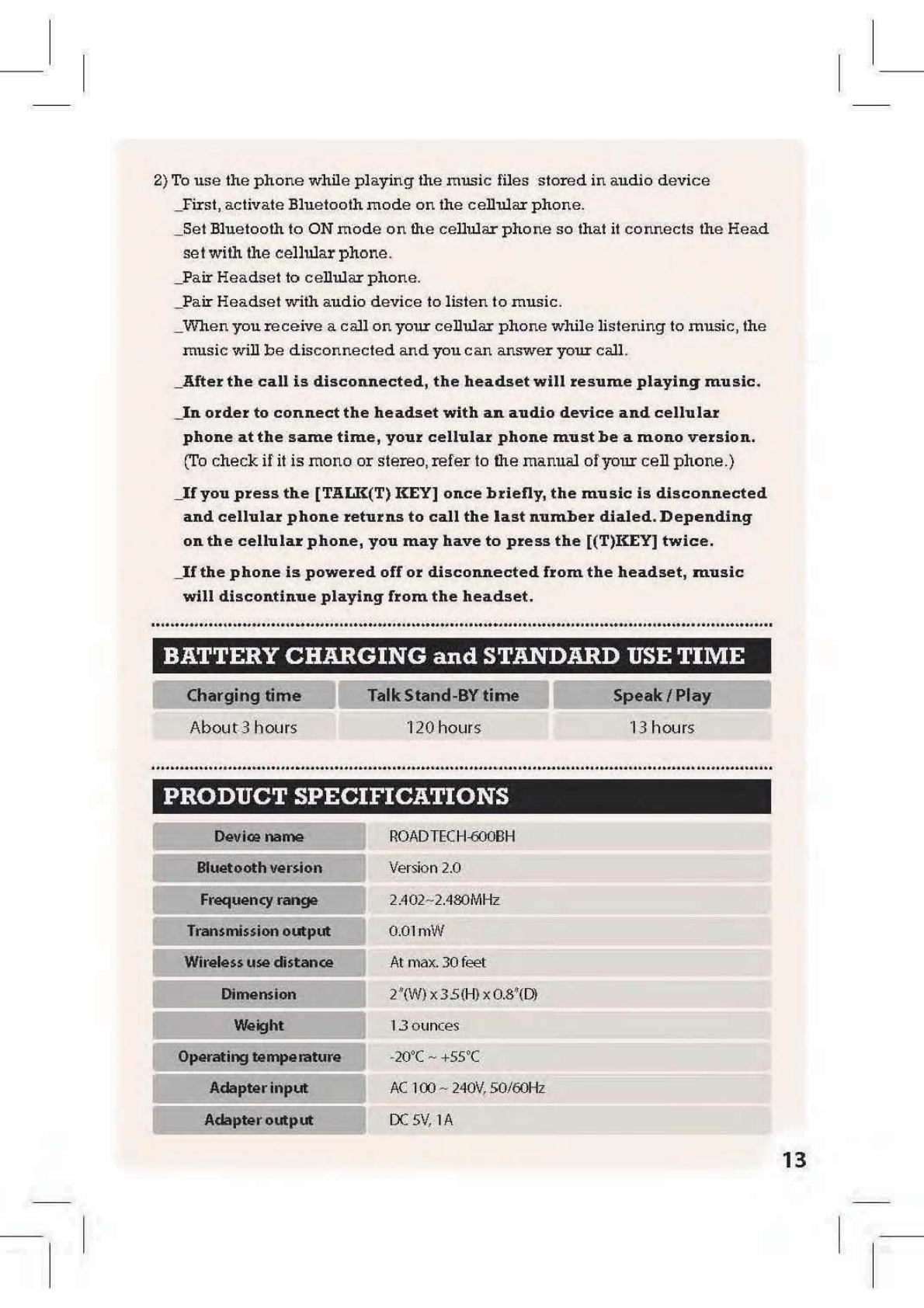 Camos Co., Ltd. BLUETOOTH HEADSET SYSTEMS Users Manual