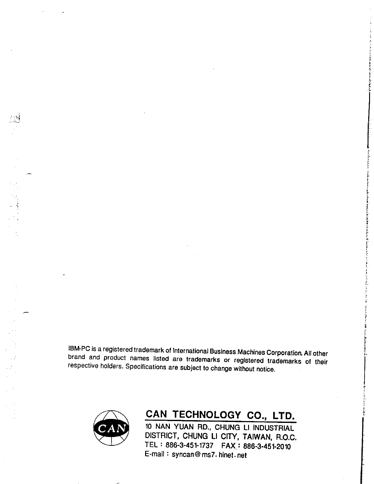 Can Technology PC-801 Game Device User Manual 20974