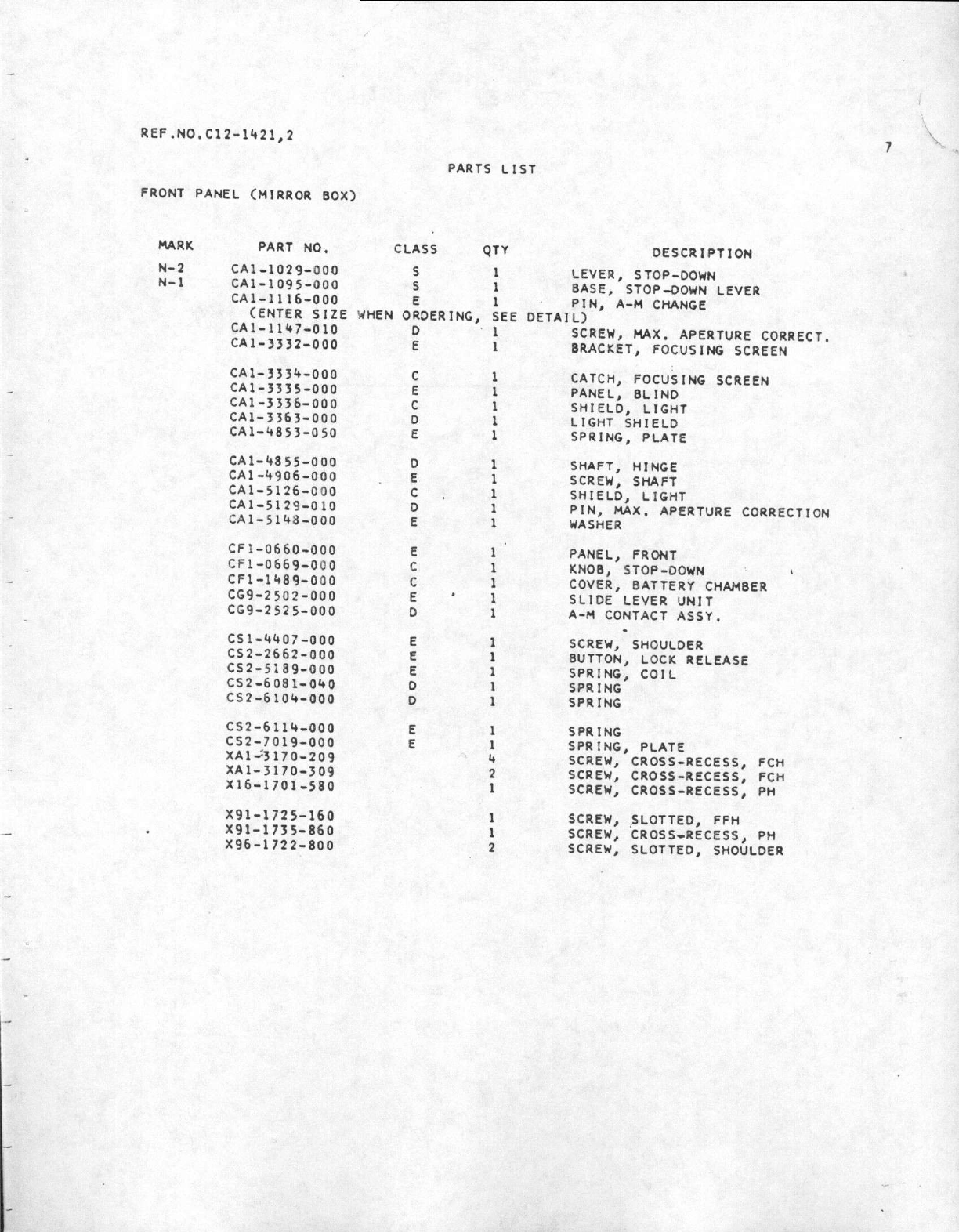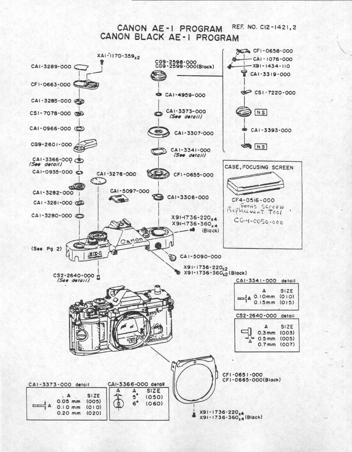 Canon Ae 1 Program Parts List