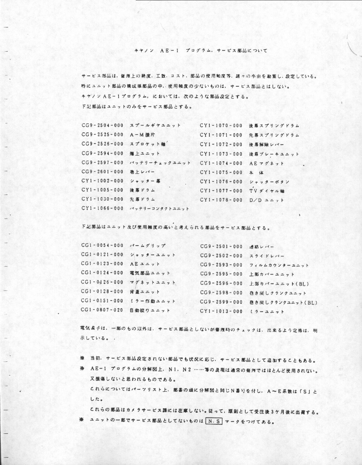 AE-1 Program - Parts List Ae1p_Part_List Free User Guide for Canon Camera, Manual - page1