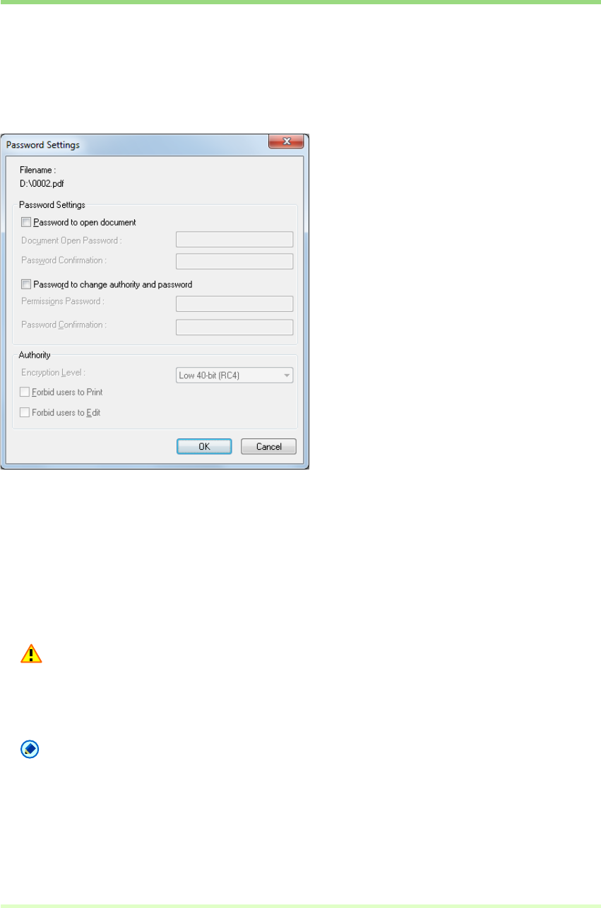• If only the Document Open password has been set, clicking Delete Password displays a confirmation