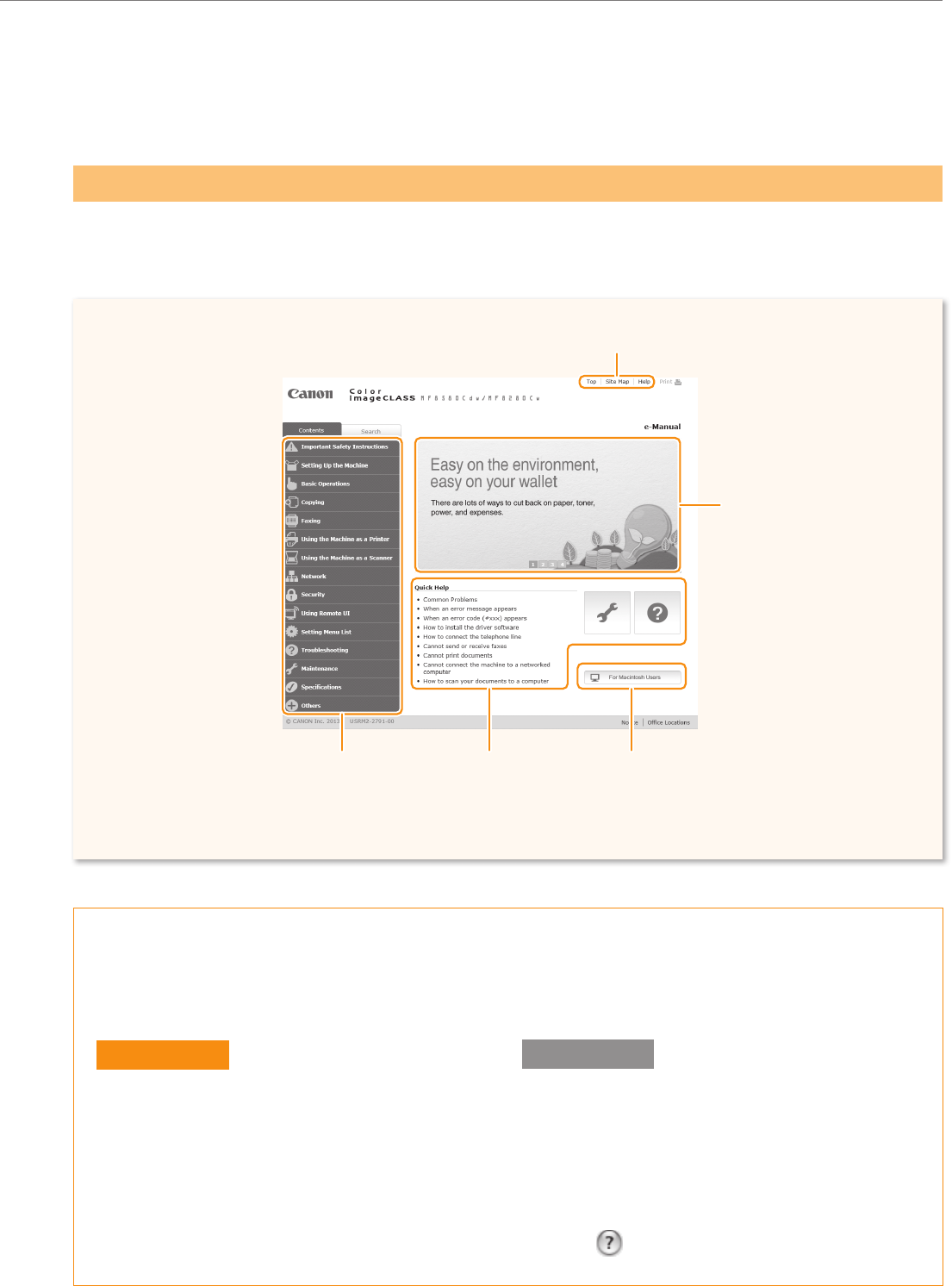 categorized by subject. For details about using the e-Manual, see